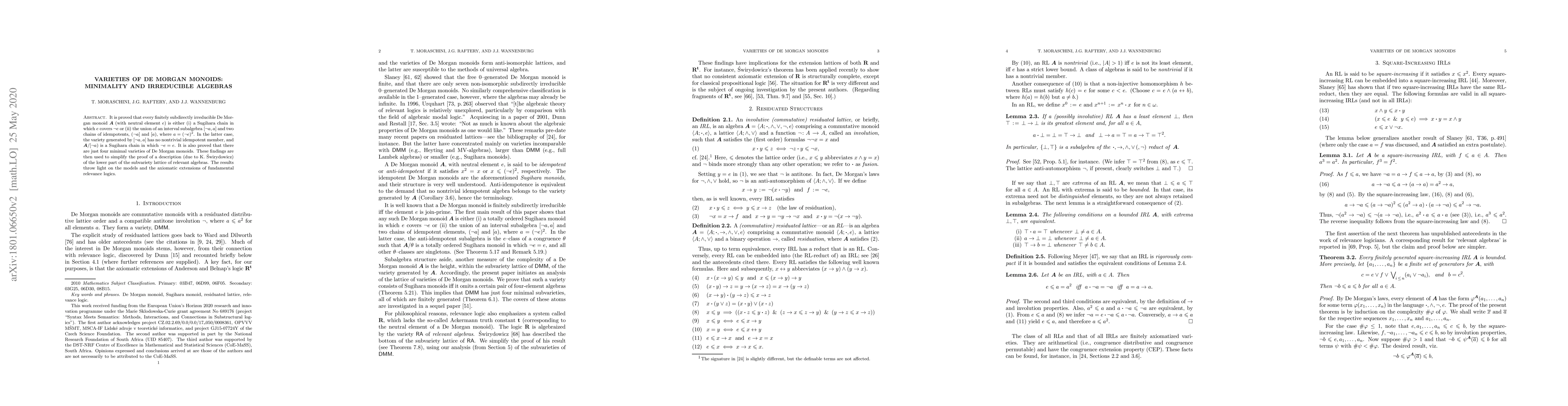 The paper presents a detailed classification of minimal varieties of De Morgan monoids and uses this to simplify proofs in the subvariety lattice of relevant algebras, advancing the algebraic understanding of relevance logics.