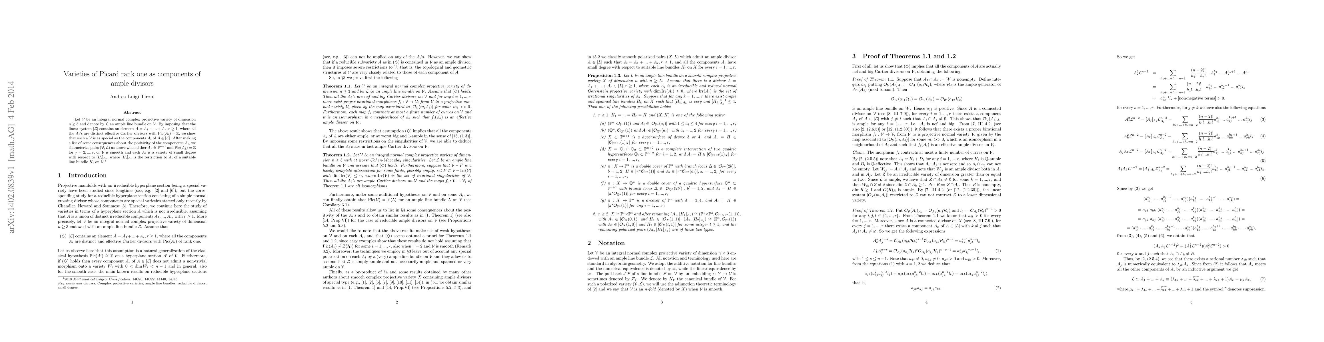 Let $\mathcal{V}$ be an integral normal complex projective variety of dimension $n\geq 3$ and denote by $\mathcal{L}$ an ample line bundle on $\mathcal{V}$. By imposing that the linear system $|\mathcal{L}|$ contains an element $A=A_{1}+...+A_{r}, r\geq 1$, where all the $A_{i}$'s are distinct effective Cartier divisors with Pic$(A_i)=\mathbb{Z}$, we show that such a $\mathcal{V}$ is as special as the components $A_i$ of $A\in |\mathcal{L}|$. After making a list of some consequences about the positivity of the components $A_i$, we characterize pairs $(\mathcal{V}, \mathcal{L})$ as above when either $A_1\cong\mathbb{P}^{n-1}$ and Pic$(A_j)=\mathbb{Z}$ for $j=2,...,r,$ or $\mathcal{V}$ is smooth and each $A_i$ is a variety of small degree with respect to $[H_i]_{A_i}$, where $[H_i]_{A_i}$ is the restriction to $A_i$ of a suitable line bundle $H_i$ on $\mathcal{V}$.