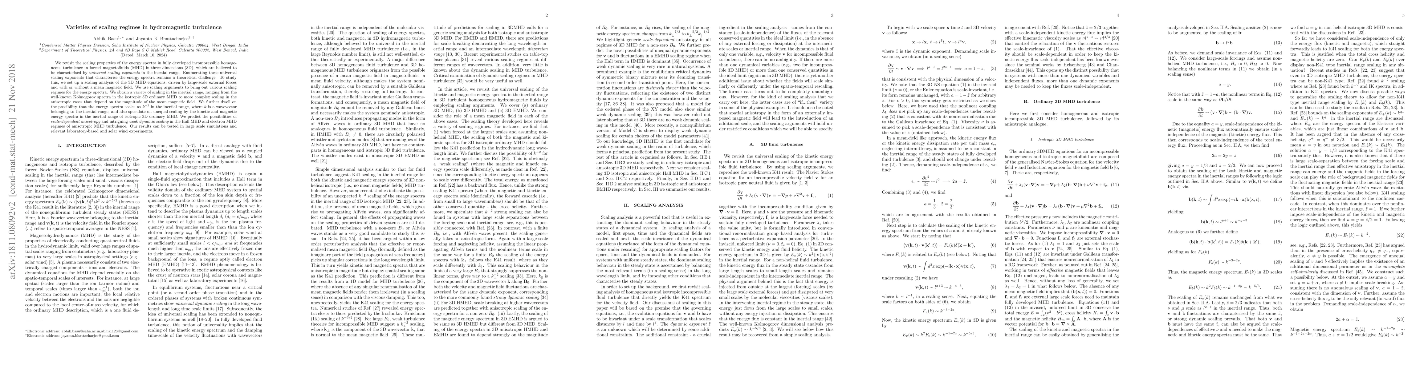 This paper investigates the scaling properties of energy spectra in three-dimensional magnetohydrodynamic (MHD) turbulence, revealing various scaling regimes that extend beyond the traditional Kolmogorov spectra, including complex anisotropic scaling influenced by mean magnetic fields and potential scale-dependent anisotropy in Hall MHD and electron MHD regimes.