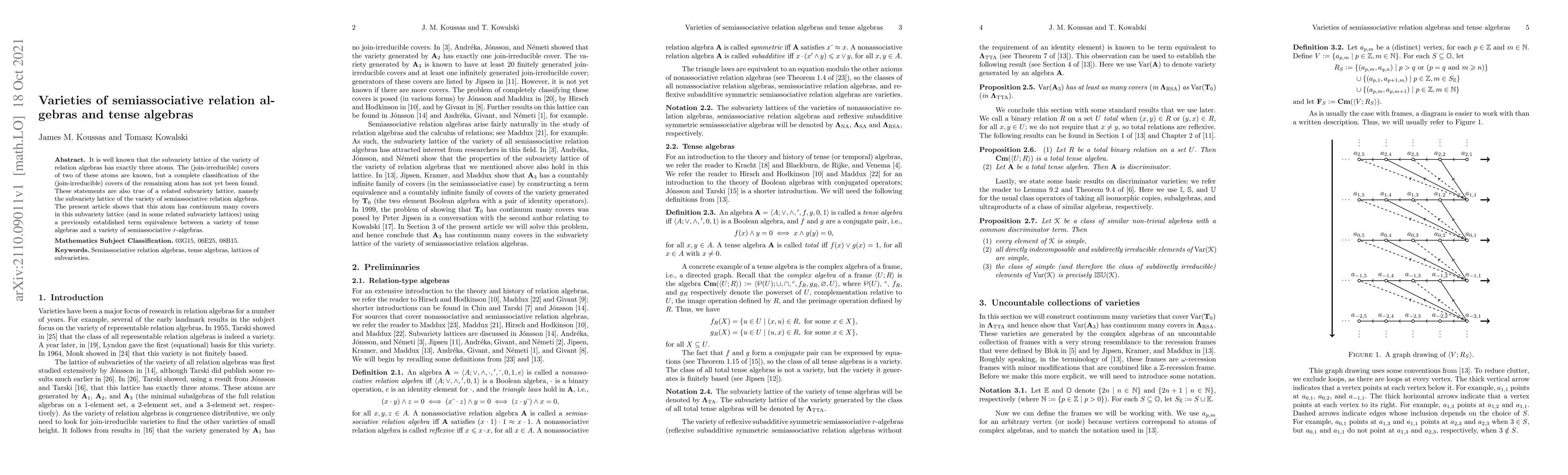 The paper identifies the join-irreducible covers of the remaining atom in the subvariety lattice of semiassociative relation algebras, demonstrating that this atom has a continuum number of covers. It utilizes a term equivalence between tense algebras and semiassociative relation algebras to achieve this classification.