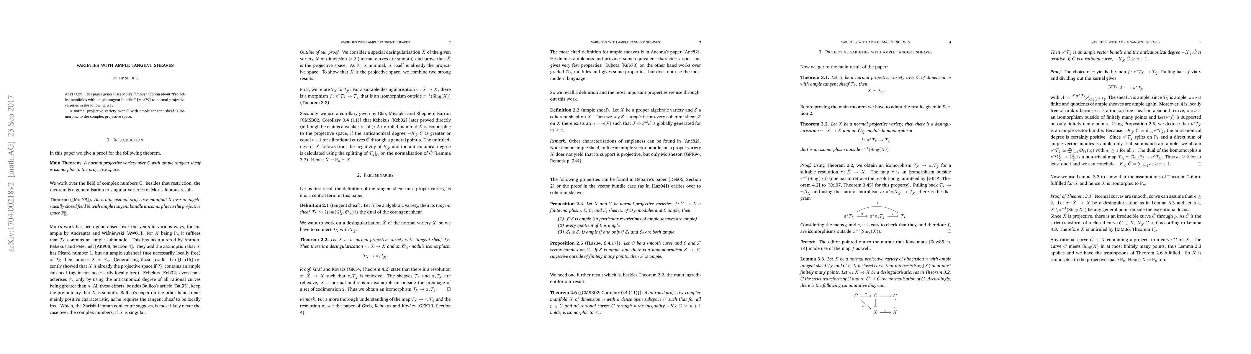 This paper extends Mori's theorem on projective manifolds with ample tangent bundles to normal projective varieties, proving that such varieties are isomorphic to complex projective space.