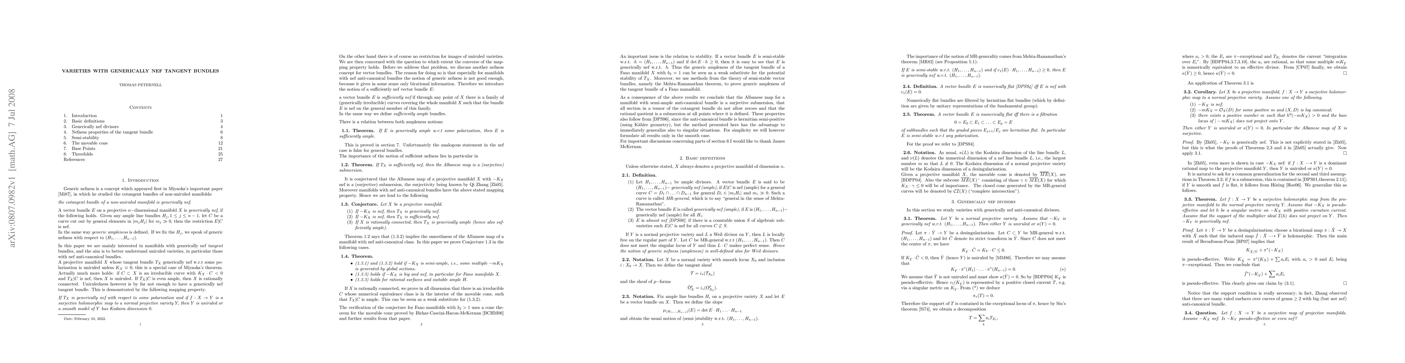 Summary: This paper explores projective manifolds with generically nef tangent bundles, proving that those with semi-ample anticanonical bundles possess this property. It also introduces the concept of sufficient nefness and examines its relationship with manifolds featuring nef anticanonical bundles.