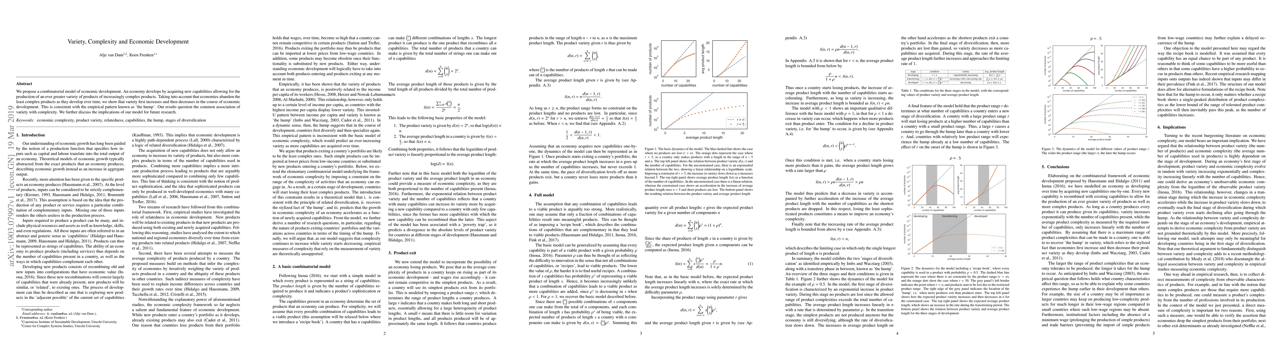 An economic development model proposes that variety first increases and then decreases as an economy grows, challenging the common association between variety and complexity. This finding is consistent with the 'hump' pattern observed in economic growth.
