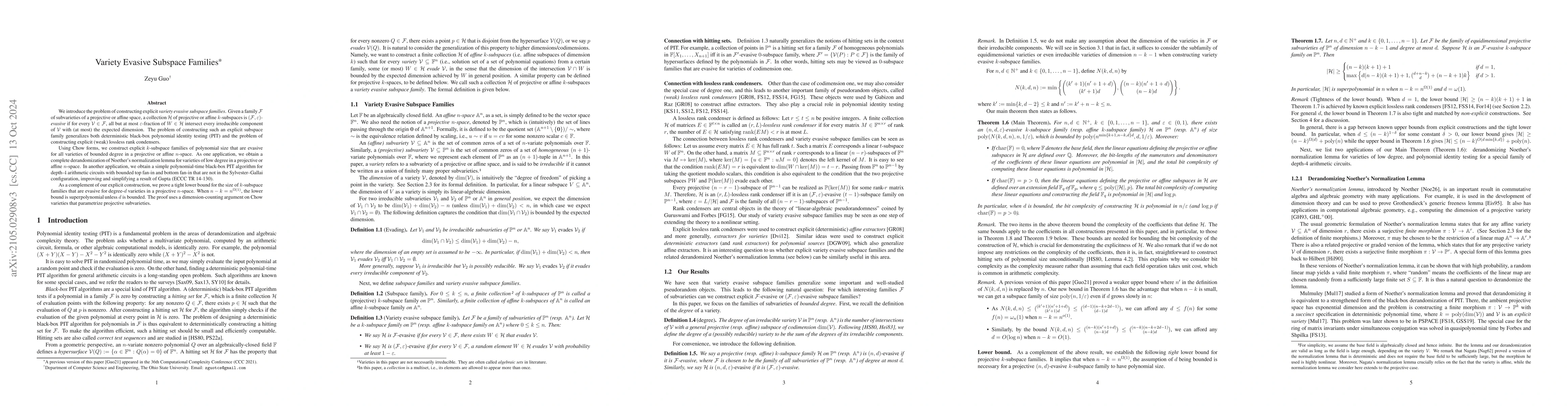 This paper constructs explicit subspace families that evade intersections with a given family of subvarieties, generalizing problems in polynomial identity testing and lossless rank condensers. It achieves this using Chow forms and applies the results to derandomize Noether's normalization lemma and simplify black-box polynomial identity testing for depth-4 circuits. Additionally, it proves a tight lower bound on the size of such subspace families for high-dimensional varieties.