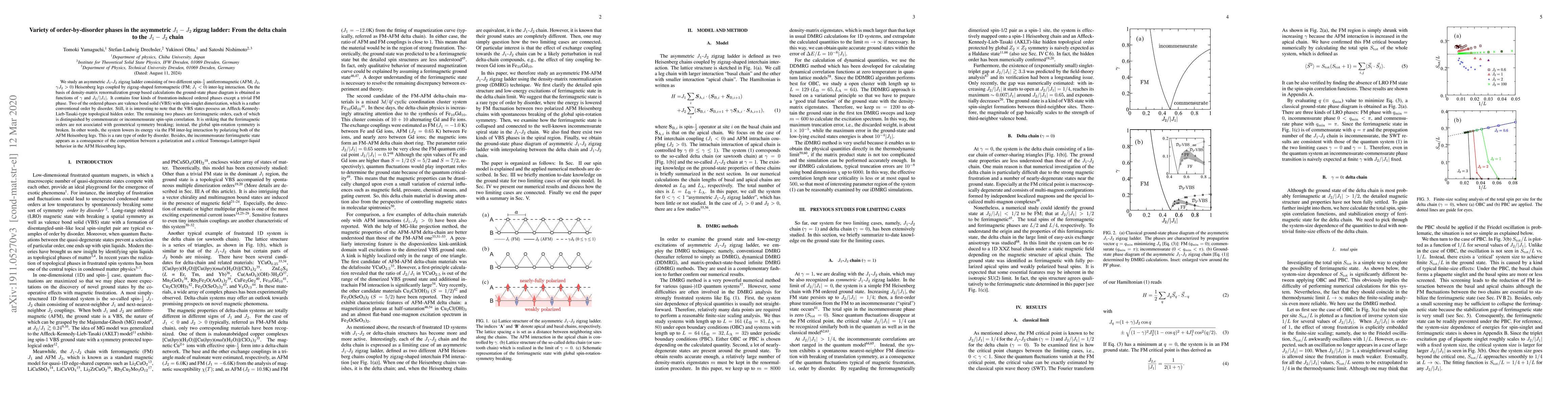 This study investigates an asymmetric $J_1$-$J_2$ zigzag ladder, revealing a variety of order-by-disorder phases including valence bond solids with topological hidden order and ferrimagnetic orders characterized by spin-spin correlations, with the latter breaking global spin-rotation symmetry without geometrical symmetry breaking.