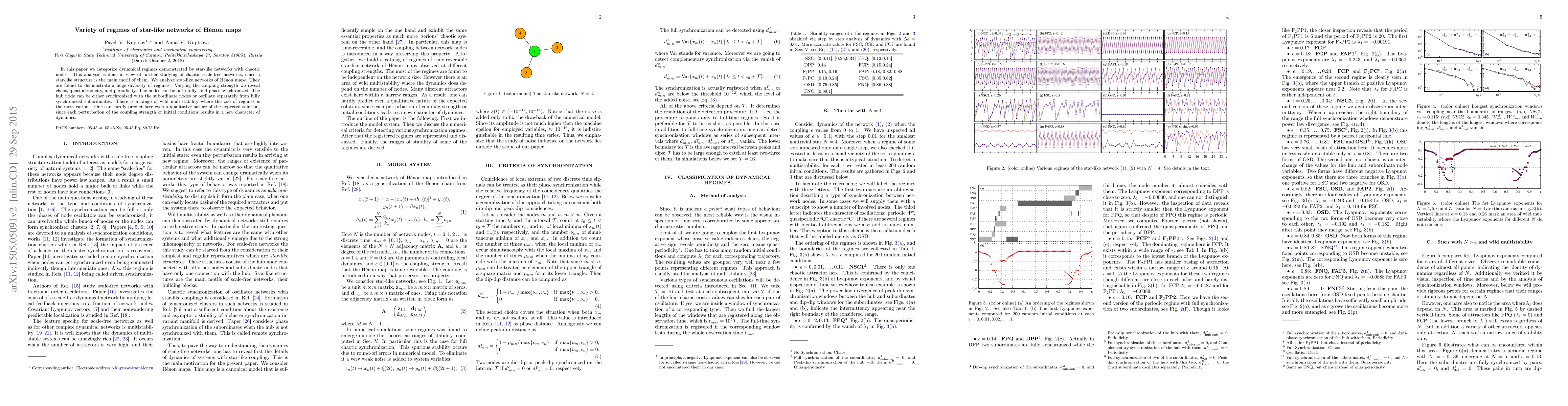 In this paper we categorize dynamical regimes demonstrated by star-like networks with chaotic nodes. This analysis is done in view of further studying of chaotic scale-free networks, since a star-like structure is the main motif of them. We analyze star-like networks of Henon maps. They are found to demonstrate a huge diversity of regimes. Varying the coupling strength we reveal chaos, quasiperiodicity, and periodicity. The nodes can be both fully- and phase-synchronized. The hub node can be either synchronized with the subordinate nodes or oscillate separately from fully synchronized subordinates. There is a range of wild multistability where the zoo of regimes is the most various. One can hardly predict here even a qualitative nature of the expected solution, since each perturbation of the coupling strength or initial conditions results in a new character of dynamics.