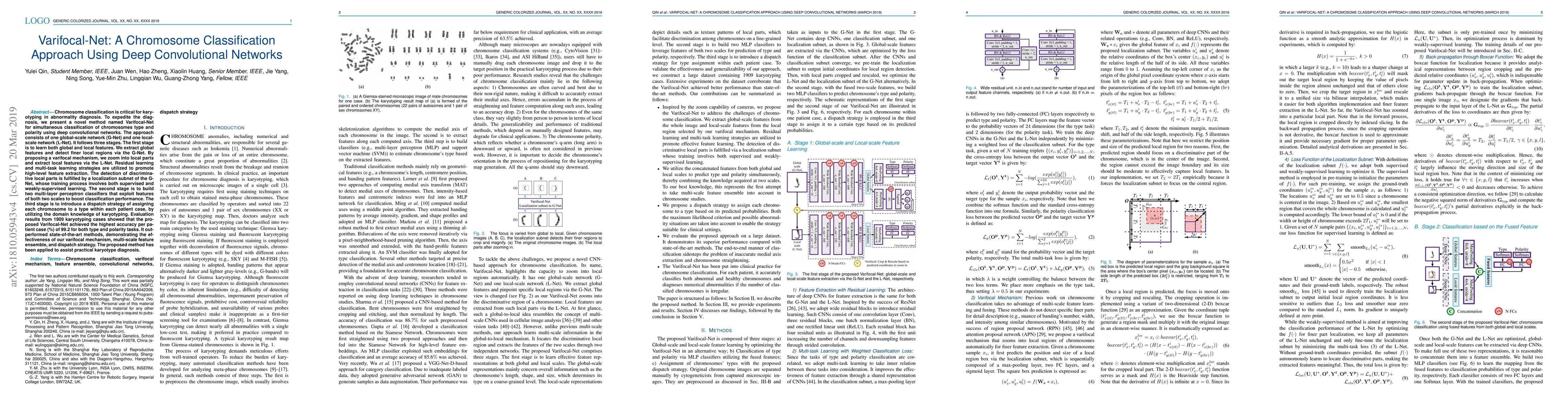 Chromosome classification is critical for karyotyping in abnormality diagnosis. To expedite the diagnosis, we present a novel method named Varifocal-Net for simultaneous classification of chromosome's type and polarity using deep convolutional networks. The approach consists of one global-scale network (G-Net) and one local-scale network (L-Net). It follows three stages. The first stage is to learn both global and local features. We extract global features and detect finer local regions via the G-Net. By proposing a varifocal mechanism, we zoom into local parts and extract local features via the L-Net. Residual learning and multi-task learning strategies are utilized to promote high-level feature extraction. The detection of discriminative local parts is fulfilled by a localization subnet of the G-Net, whose training process involves both supervised and weakly-supervised learning. The second stage is to build two multi-layer perceptron classifiers that exploit features of both two scales to boost classification performance. The third stage is to introduce a dispatch strategy of assigning each chromosome to a type within each patient case, by utilizing the domain knowledge of karyotyping. Evaluation results from 1909 karyotyping cases showed that the proposed Varifocal-Net achieved the highest accuracy per patient case (%) 99.2 for both type and polarity tasks. It outperformed state-of-the-art methods, demonstrating the effectiveness of our varifocal mechanism, multi-scale feature ensemble, and dispatch strategy. The proposed method has been applied to assist practical karyotype diagnosis.