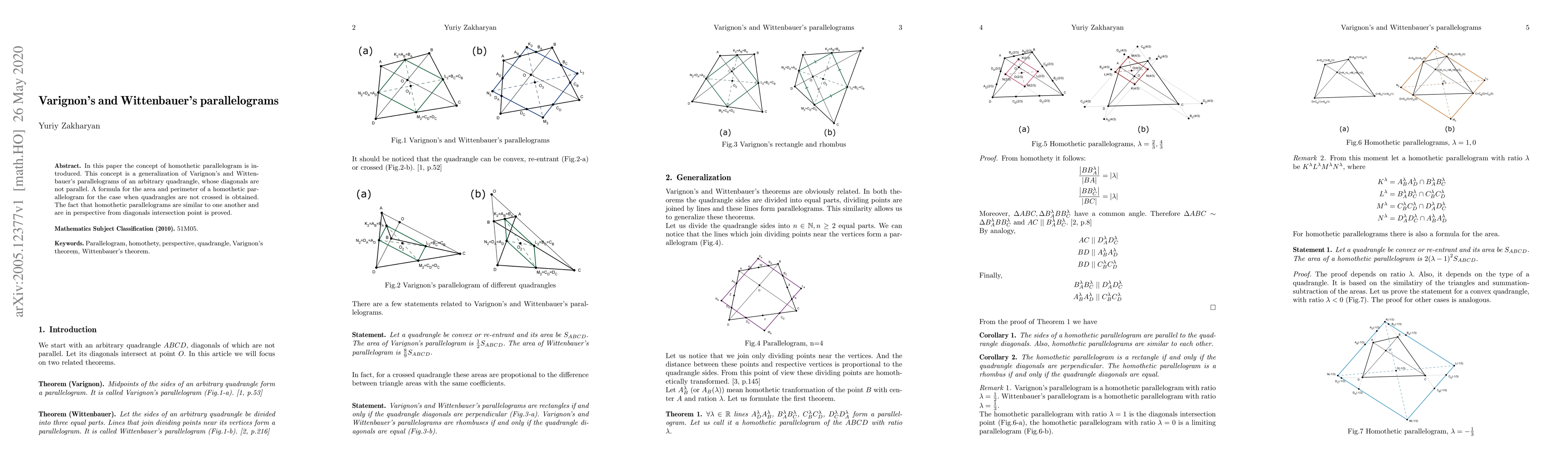 This paper introduces the concept of homothetic parallelograms as a generalization of Varignon's and Wittenbauer's parallelograms for non-parallel diagonals in arbitrary quadrangles. It provides formulas for the area and perimeter of these parallelograms and proves their similarity and perspective nature from the intersection point of the diagonals.
