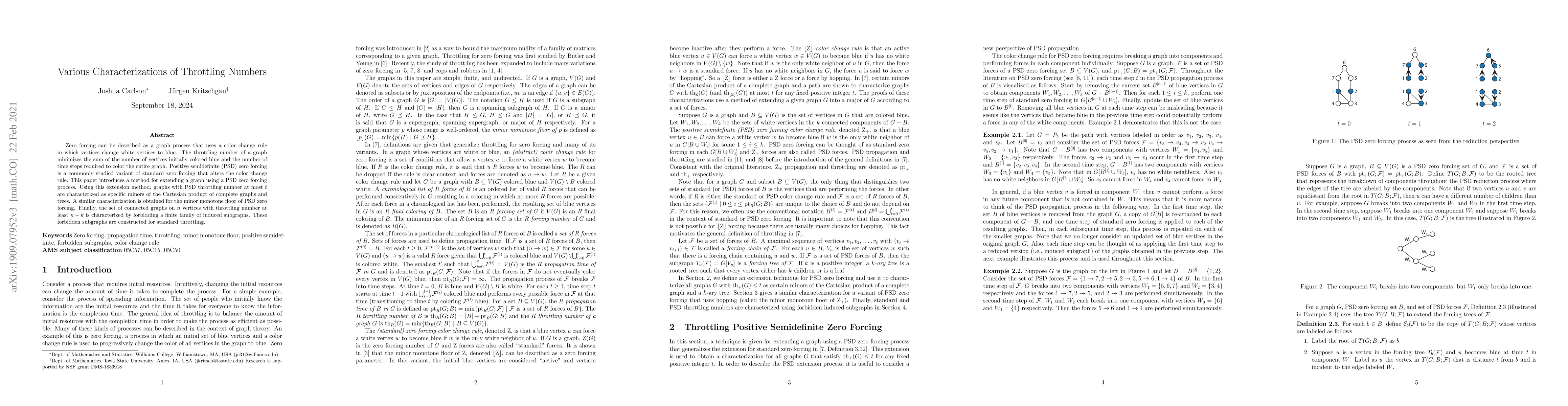 This paper introduces a method to extend graphs using PSD zero forcing, characterizing graphs with PSD throttling number at most t as specific minors of Cartesian products of complete and tree graphs. It also provides a characterization for the minor monotone floor of PSD zero forcing. Furthermore, it defines a set of connected graphs on n vertices with throttling number at least n-k by forbidding a finite family of induced subgraphs for standard throttling.