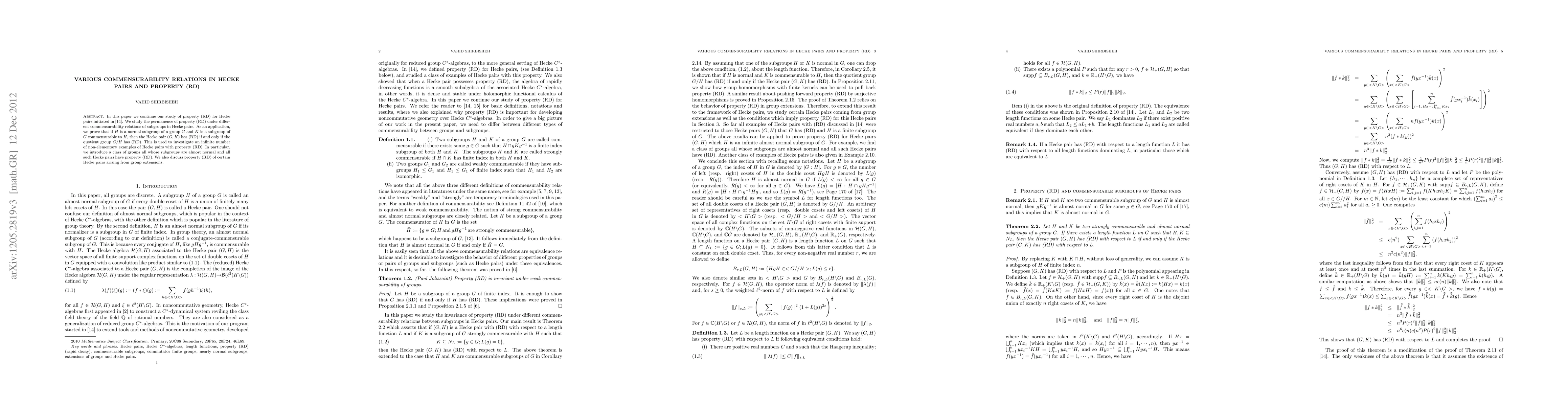 The paper continues the study of property (RD) for Hecke pairs, examining its behavior under various commensurability relations of subgroups, and utilizes group extensions and properties of subgroups to prove results.