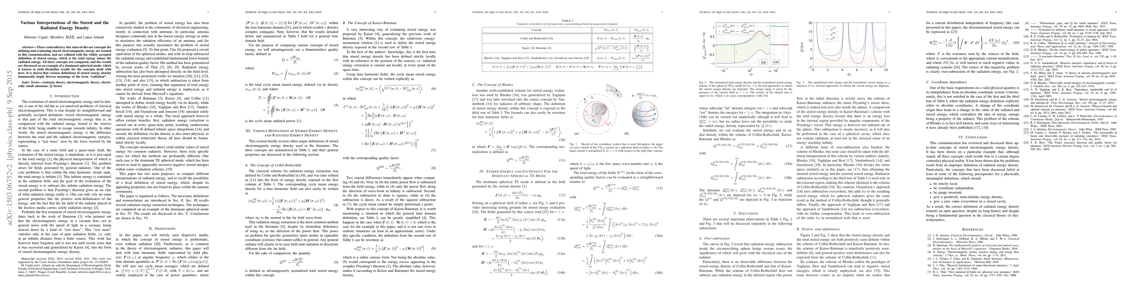 A study compares three state-of-the-art concepts for defining stored electromagnetic energy density, highlighting that different definitions imply diverse meanings of 'radiation'. It also discusses implications on a dominant spherical mode example.