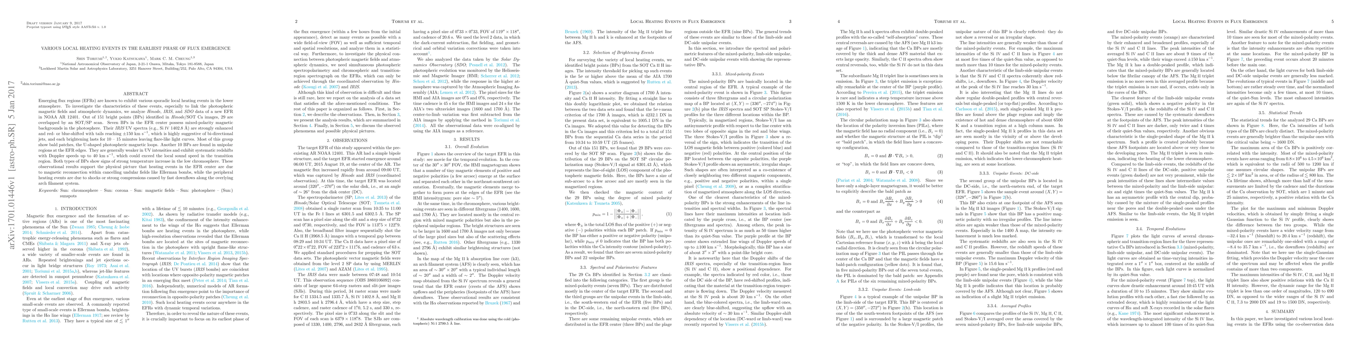 Research paper investigates local heating events in emerging flux regions, finding two types: magnetic reconnection at centers and shocks/compressions along edges, with implications for understanding solar activity.