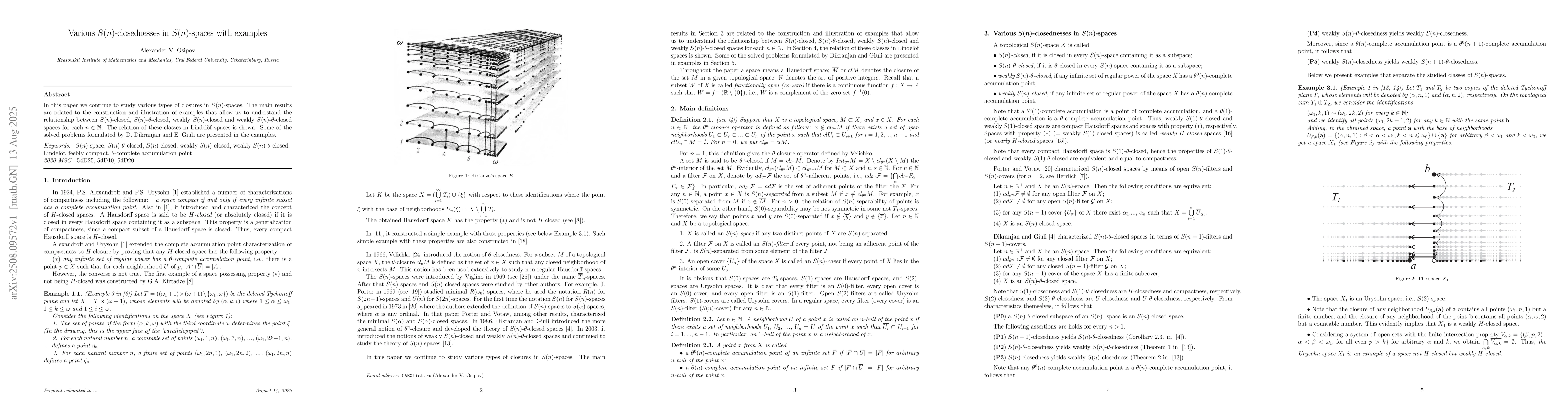 In this paper we continue to study various types of closures in $S(n)$-spaces. The main results are related to the construction and illustration of examples that allow us to understand the relationship between $S(n)$-closed, $S(n)$-$\theta$-closed, weakly $S(n)$-closed and weakly $S(n)$-$\theta$-closed spaces for each $n\in \mathbb{N}$. The relation of these classes in Lindel\"{o}f spaces is shown. Some of the solved problems formulated by D. Dikranjan and E. Giuli are presented in the examples.