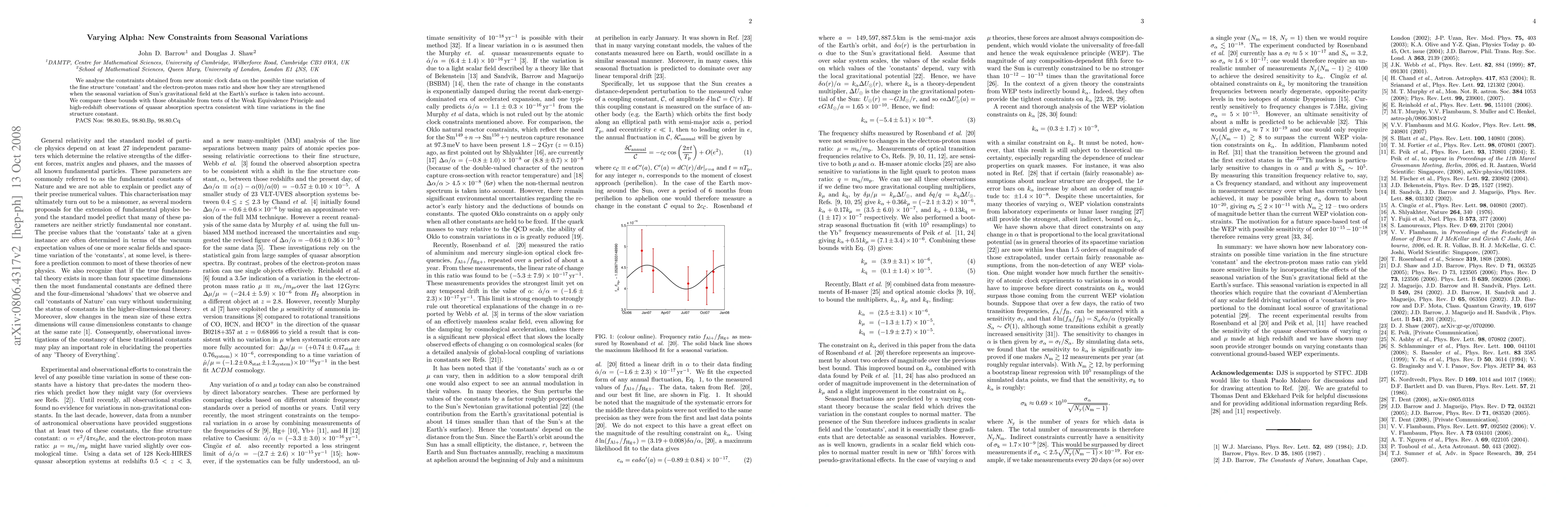 We analyse the constraints obtained from new atomic clock data on the possible time variation of the fine structure `constant' and the electron-proton mass ratio and show how they are strengthened when the seasonal variation of Sun's gravitational field at the Earth's surface is taken into account. We compare these bounds with those obtainable from tests of the Weak Equivalence Principle and high-redshift observations of quasar absorption spectra consistent with time variations in the fine structure constant.