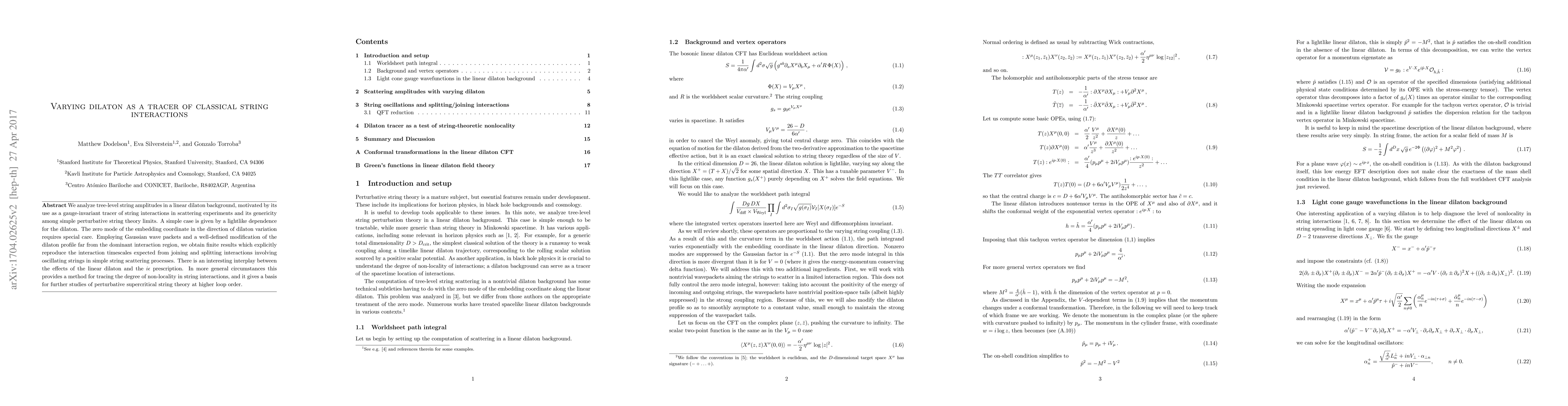 This paper investigates tree-level string amplitudes in a linear dilaton background, using the dilaton as a gauge-invariant tracer for string interactions in scattering experiments. The study focuses on finite results obtained via Gaussian wave packets, revealing interaction timescales consistent with joining and splitting oscillating strings.