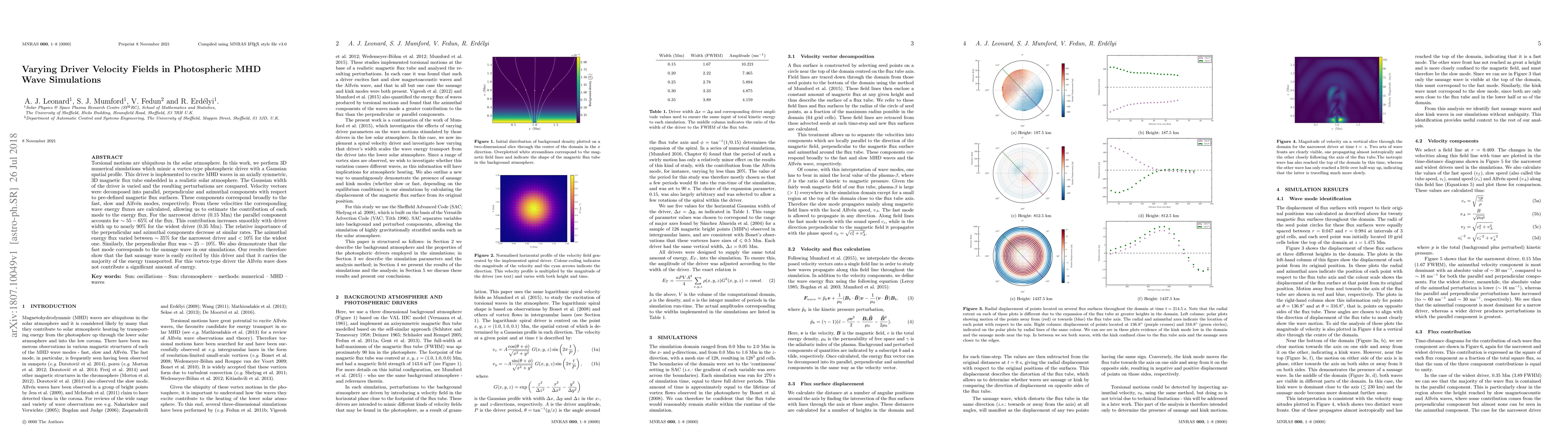 Torsional motions are ubiquitous in the solar atmosphere. In this work, we perform 3D numerical simulations which mimic a vortex-type photospheric driver with a Gaussian spatial profile. This driver is implemented to excite MHD waves in an axially symmetric, 3D magnetic flux tube embedded in a realistic solar atmosphere. The Gaussian width of the driver is varied and the resulting perturbations are compared. Velocity vectors were decomposed into parallel, perpendicular and azimuthal components with respect to pre-defined magnetic flux surfaces. These components correspond broadly to the fast, slow and Alfven modes, respectively. From these velocities the corresponding wave energy fluxes are calculated, allowing us to estimate the contribution of each mode to the energy flux. For the narrowest driver ($0.15$ Mm) the parallel component accounts for $\sim 55 - 65\%$ of the flux. This contribution increases smoothly with driver width up to nearly $90\%$ for the widest driver ($0.35$ Mm). The relative importance of the perpendicular and azimuthal components decrease at similar rates. The azimuthal energy flux varied between $\sim 35\%$ for the narrowest driver and $< 10\%$ for the widest one. Similarly, the perpendicular flux was $\sim 25 - 10\%$. We also demonstrate that the fast mode corresponds to the sausage wave in our simulations. Our results therefore show that the fast sausage wave is easily excited by this driver and that it carries the majority of the energy transported. For this vortex-type driver the Alfven wave does not contribute a significant amount of energy.