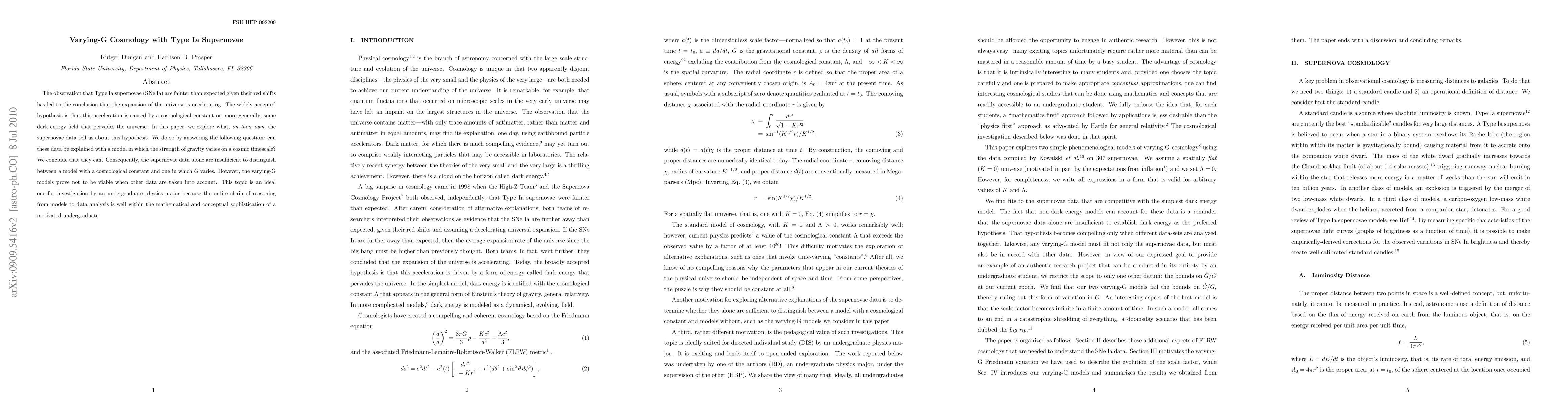 This paper investigates if the observed faintness of Type Ia supernovae, indicative of an accelerating universe, can be explained by a varying-G cosmology rather than dark energy, offering a challenging yet accessible topic for undergraduate physics students. The study aims to explore whether cosmic gravity strength variations could account for the supernovae's redshift data.
