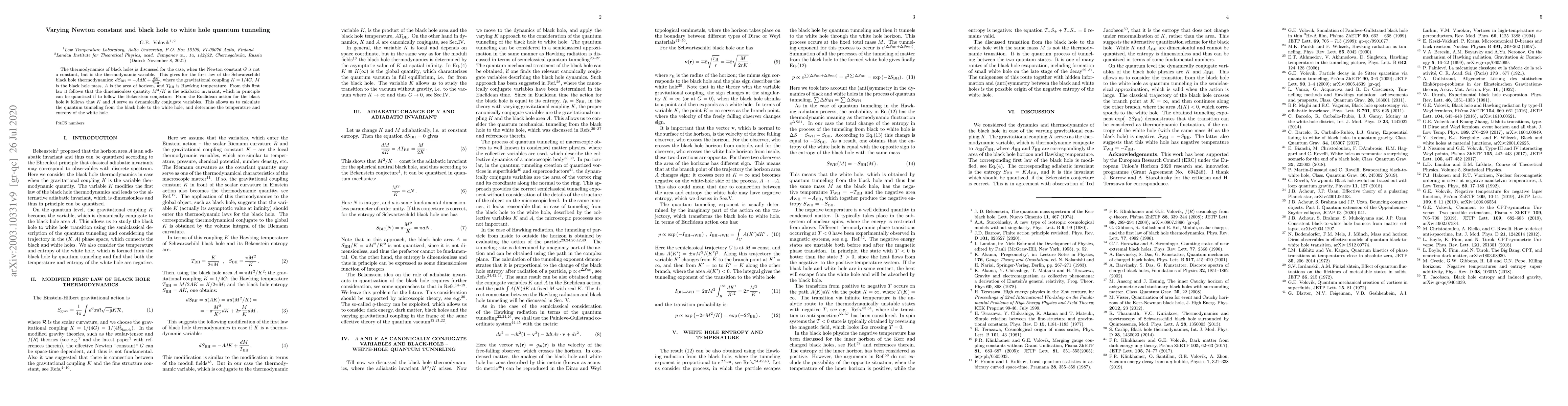 Researchers explore how a variable Newton constant affects black hole thermodynamics, leading to the discovery of an adiabatic invariant and the ability to calculate quantum tunneling from black holes to white holes.