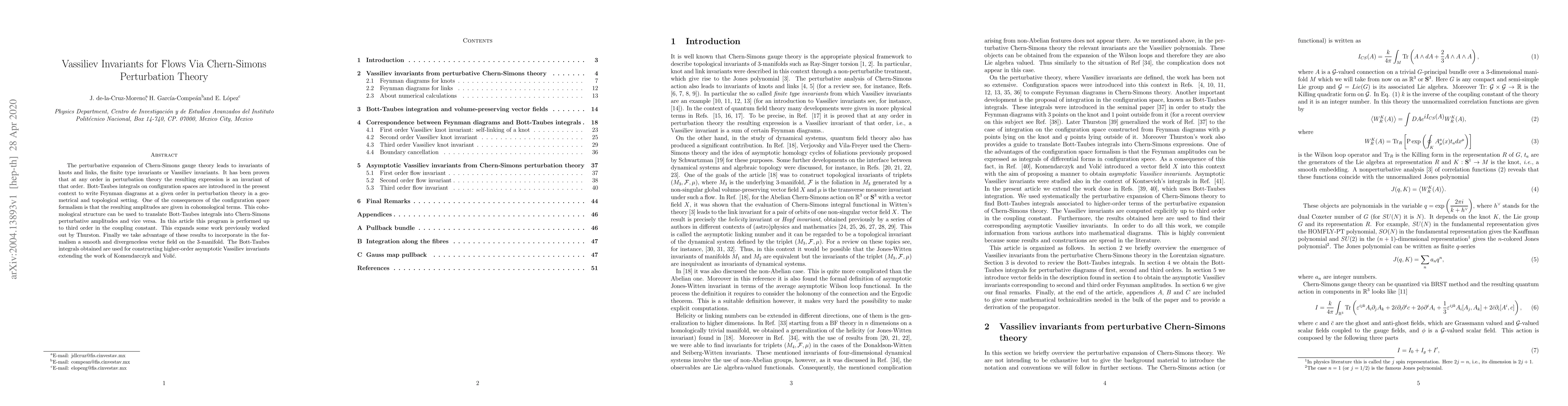 This paper explores the use of Chern-Simons perturbation theory to derive Vassiliev invariants for smooth, divergenceless vector fields on 3-manifolds. It leverages Bott-Taubes integrals and cohomological structures to relate these integrals to perturbative amplitudes up to third order.