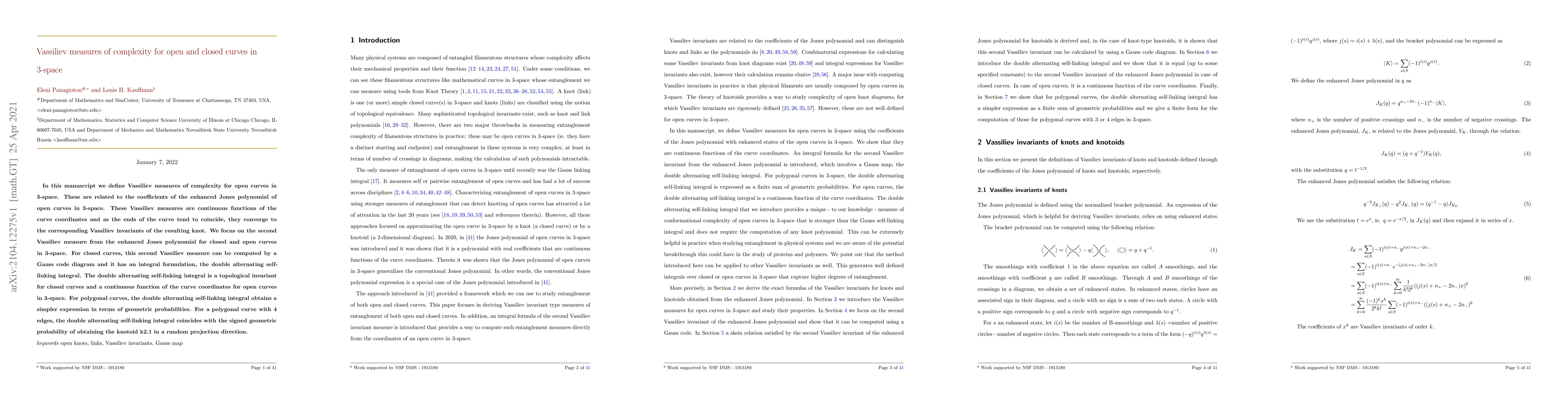 Louis H. Kauffman, Kasturi Barkataki, Eleni Panagiotou
