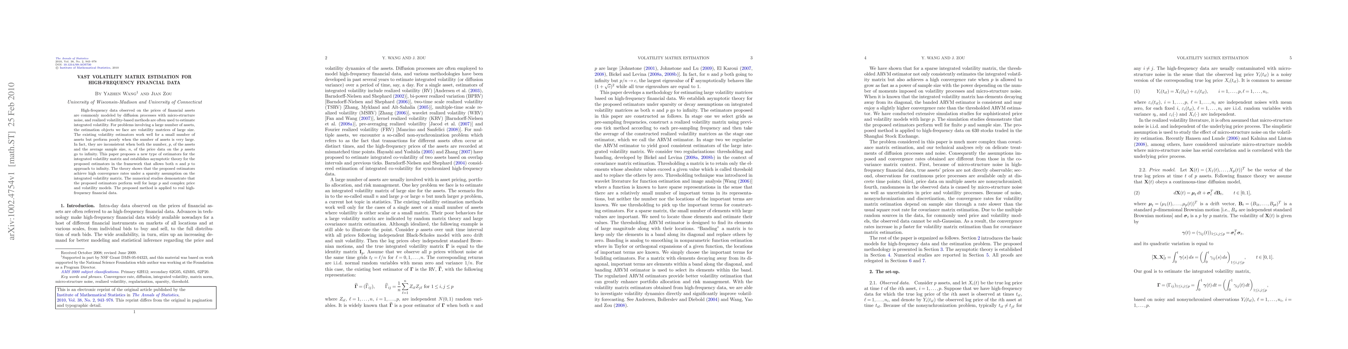 This paper introduces a new estimator for the integrated volatility matrix in high-frequency financial data, addressing the inefficiency of existing methods when dealing with large numbers of assets. The proposed estimators achieve high convergence rates under sparsity assumptions and show superior performance in numerical studies and real-data applications.
