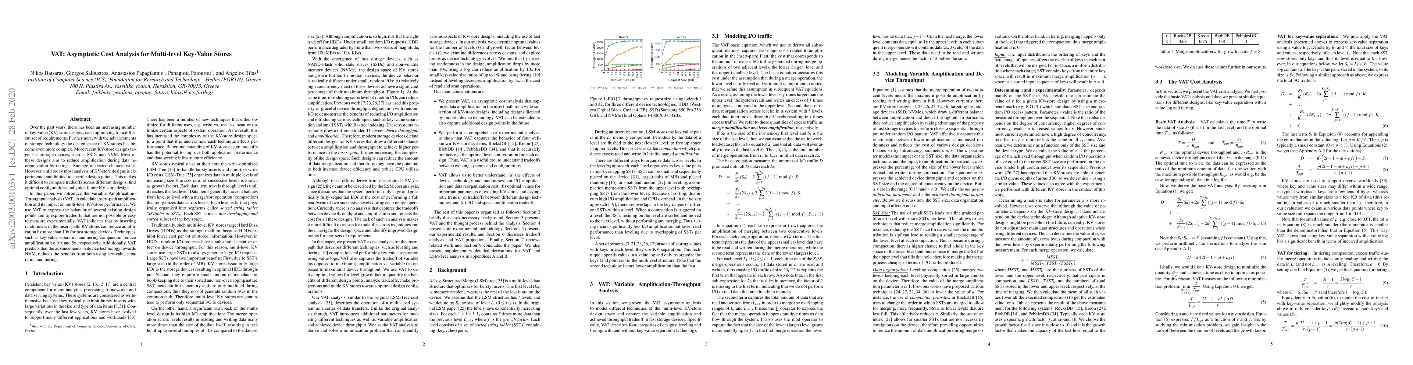 Over the past years, there has been an increasing number of key-value (KV) store designs, each optimizing for a different set of requirements. Furthermore, with the advancements of storage technology the design space of KV stores has become even more complex. More recent KV-store designs target fast storage devices, such as SSDs and NVM. Most of these designs aim to reduce amplification during data reorganization by taking advantage of device characteristics. However, until today most analysis of KV-store designs is experimental and limited to specific design points. This makes it difficult to compare tradeoffs across different designs, find optimal configurations and guide future KV-store design. In this paper, we introduce the Variable Amplification- Throughput analysis (VAT) to calculate insert-path amplification and its impact on multi-level KV-store performance.We use VAT to express the behavior of several existing design points and to explore tradeoffs that are not possible or easy to measure experimentally. VAT indicates that by inserting randomness in the insert-path, KV stores can reduce amplification by more than 10x for fast storage devices. Techniques, such as key-value separation and tiering compaction, reduce amplification by 10x and 5x, respectively. Additionally, VAT predicts that the advancements in device technology towards NVM, reduces the benefits from both using key-value separation and tiering.