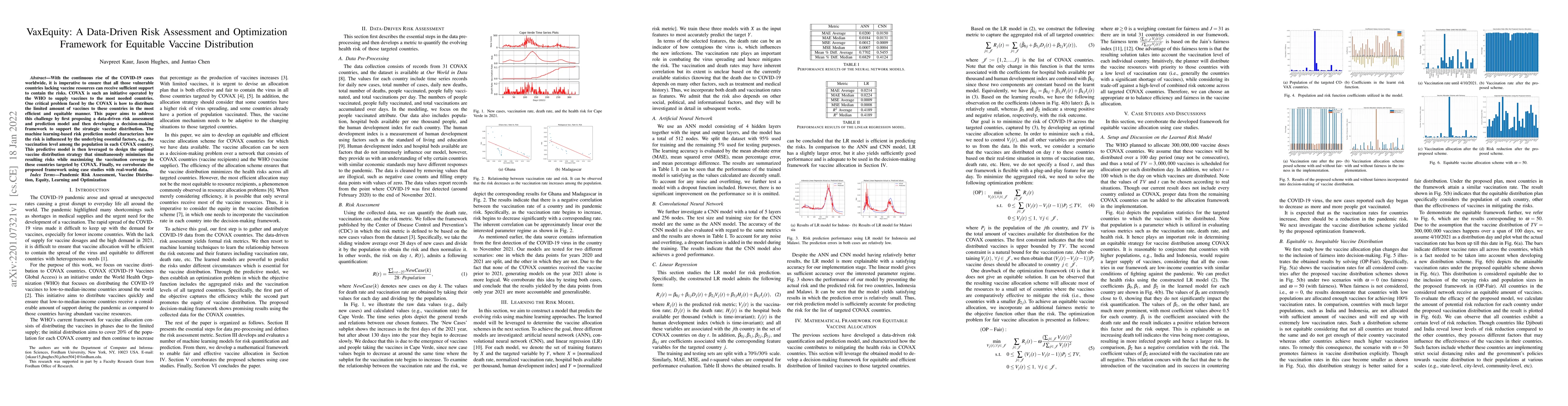 The framework uses machine learning to predict vaccine needs based on population vaccination levels and informs strategic distribution decisions for the COVAX initiative.