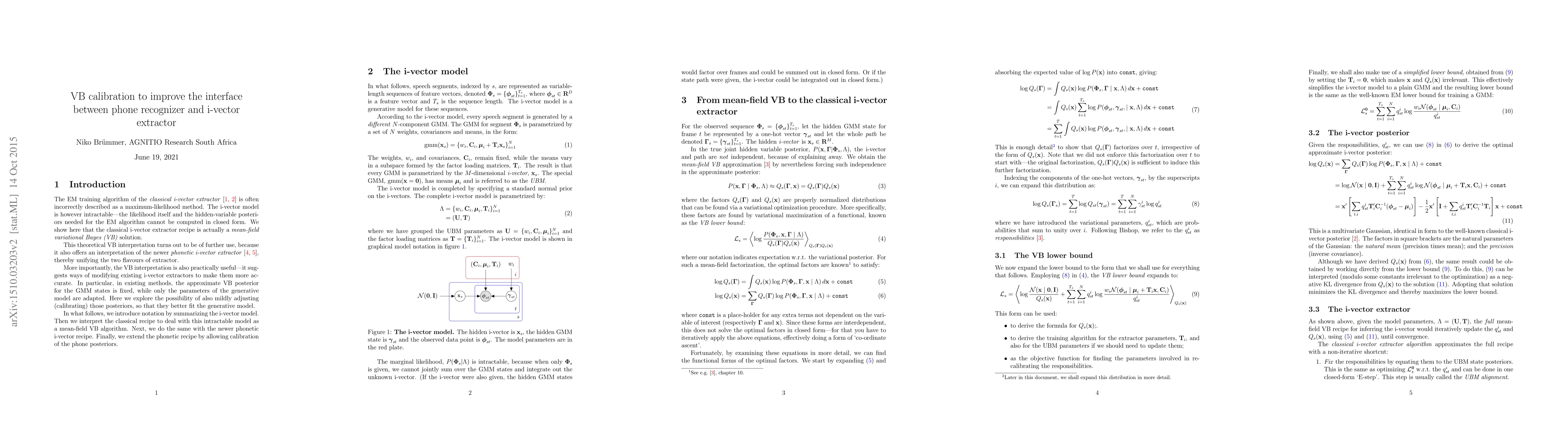 The EM training algorithm of the classical i-vector extractor is often incorrectly described as a maximum-likelihood method. The i-vector model is however intractable: the likelihood itself and the hidden-variable posteriors needed for the EM algorithm cannot be computed in closed form. We show here that the classical i-vector extractor recipe is actually a mean-field variational Bayes (VB) recipe. This theoretical VB interpretation turns out to be of further use, because it also offers an interpretation of the newer phonetic i-vector extractor recipe, thereby unifying the two flavours of extractor. More importantly, the VB interpretation is also practically useful: it suggests ways of modifying existing i-vector extractors to make them more accurate. In particular, in existing methods, the approximate VB posterior for the GMM states is fixed, while only the parameters of the generative model are adapted. Here we explore the possibility of also mildly adjusting (calibrating) those posteriors, so that they better fit the generative model.