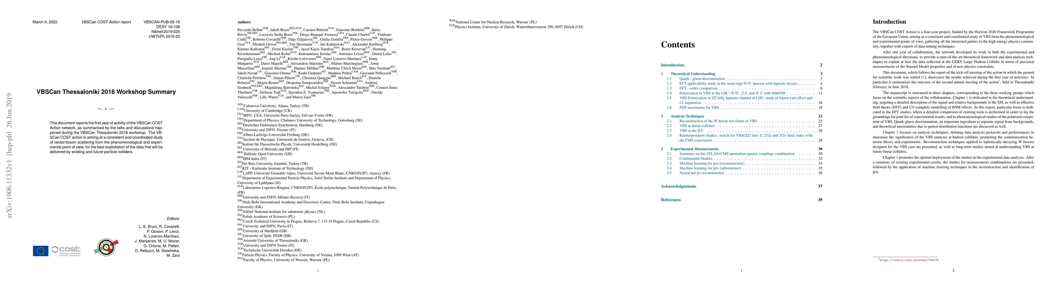 Researchers from the VBSCan COST Action network discussed vector-boson scattering at a 2018 workshop in Thessaloniki, focusing on data exploitation for particle colliders. The goal is to develop consistent and coordinated studies of vector-boson scattering from a phenomenological and experimental perspective.