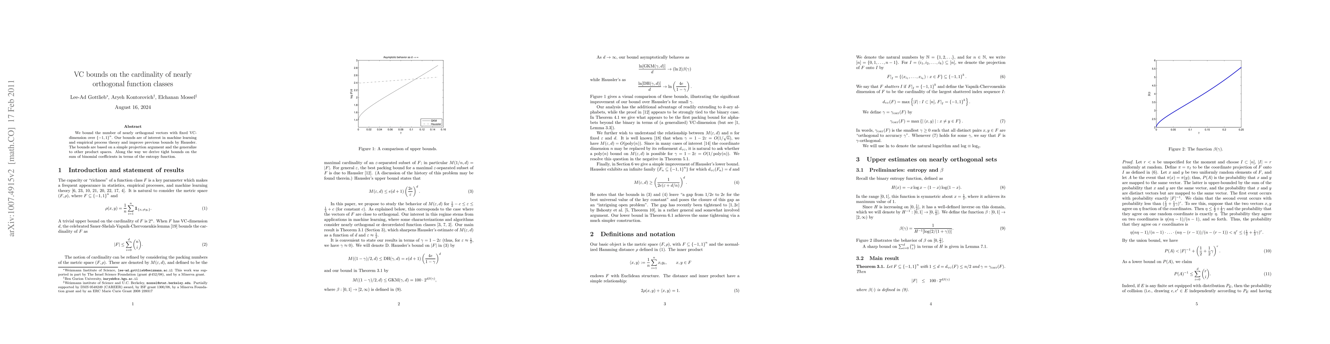 Researchers bound the number of nearly orthogonal vectors with a fixed VC dimension over a set of n elements, improving previous bounds in machine learning and empirical process theory.