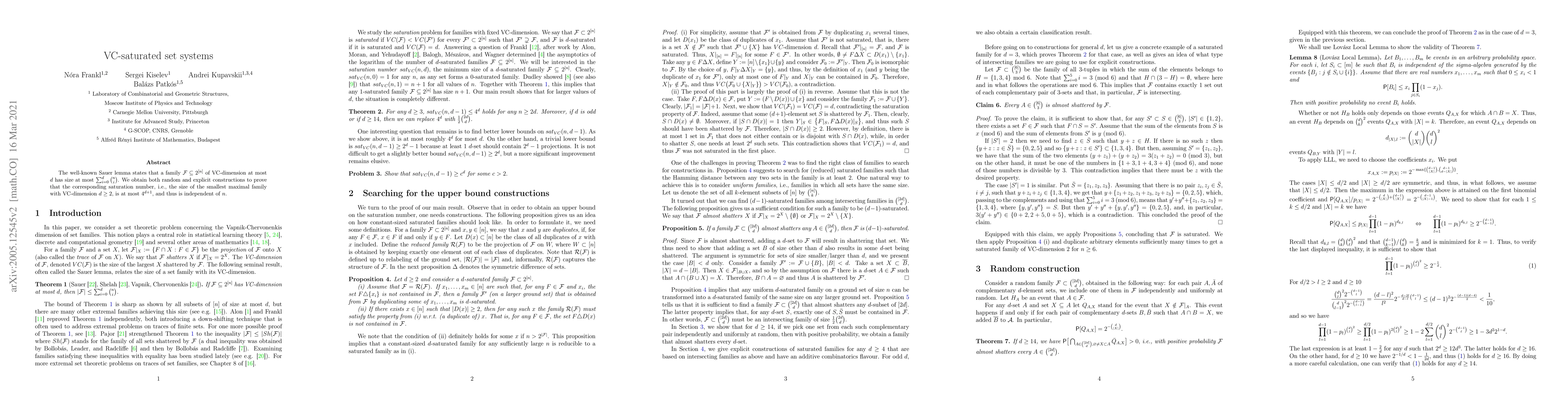 This research improves upon the Sauer lemma, proving that the size of the smallest maximal set system with VC-dimension at most d (for d ≥ 2) is at most 4^(d+1), independent of n, through both random and explicit constructions.