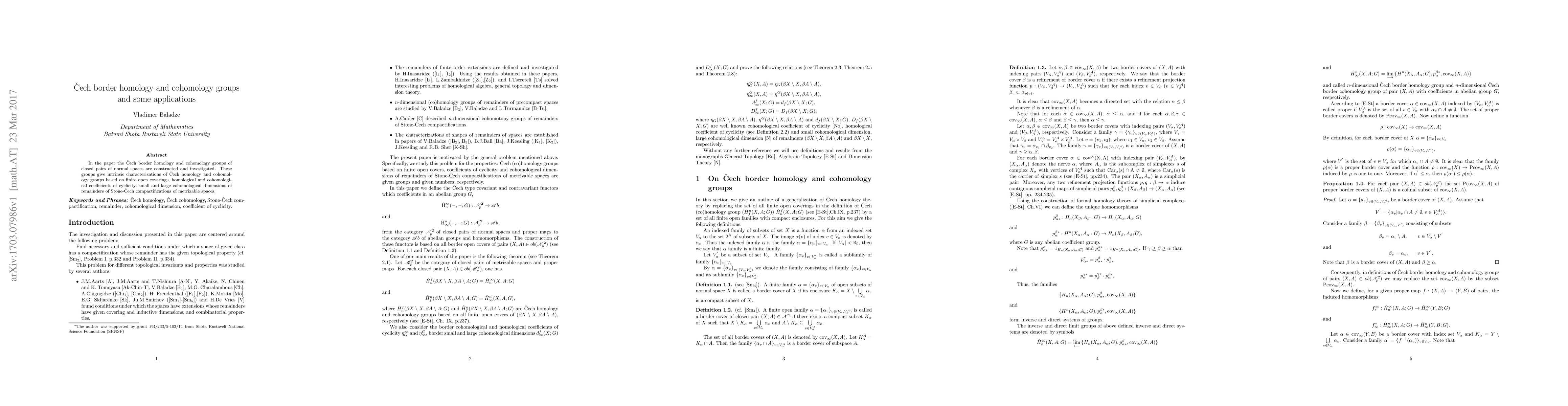 In the paper the \v{C}ech border homology and cohomology groups of closed pairs of normal spaces are constructed and investigated. These groups give intrinsic characterizations of \v{C}ech homology and cohomology groups based on finite open coverings, homological and cohomological coefficients of cyclicity, small and large cohomological dimensions of remainders of Stone-\v{C}ech compactifications of metrizable spaces.