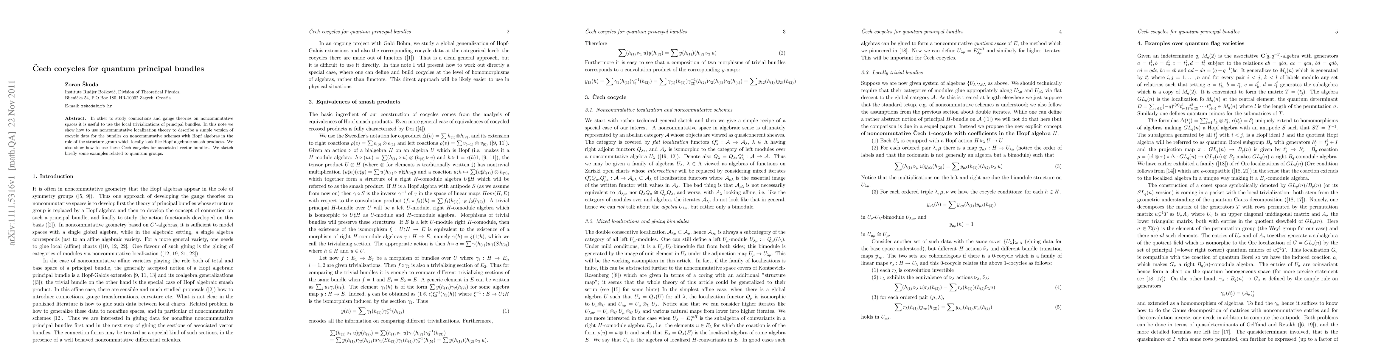 This paper introduces \v{C}ech cocycles for quantum principal bundles on noncommutative spaces using localization theory, focusing on Hopf algebras as structure groups, and applies this framework to associated vector bundles with brief examples from quantum groups.