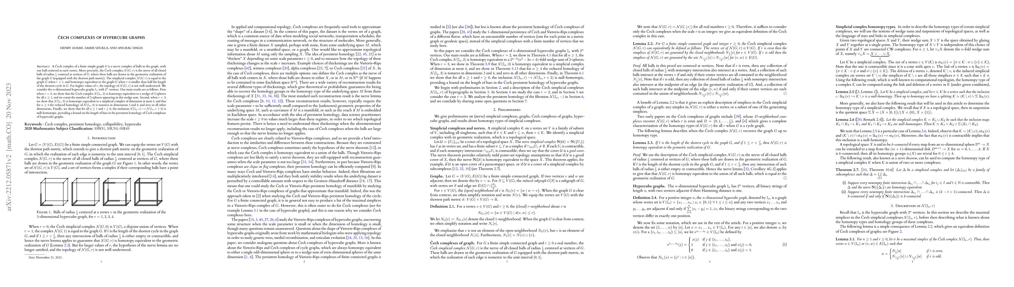 The paper studies \v{C}ech complexes of $n$-dimensional hypercube graphs $\mathbb{I}_n$, showing that $\mathcal{N}(\mathbb{I}_n, 2)$ is homotopy equivalent to a wedge of 2-spheres, and $\mathcal{N}(\mathbb{I}_n, 3)$ has non-trivial homology in dimensions 3 and 4 for $n\ge 4$. It also proves that inclusions between consecutive \v{C}ech complexes are null-homotopic, providing bounds for persistent homology.