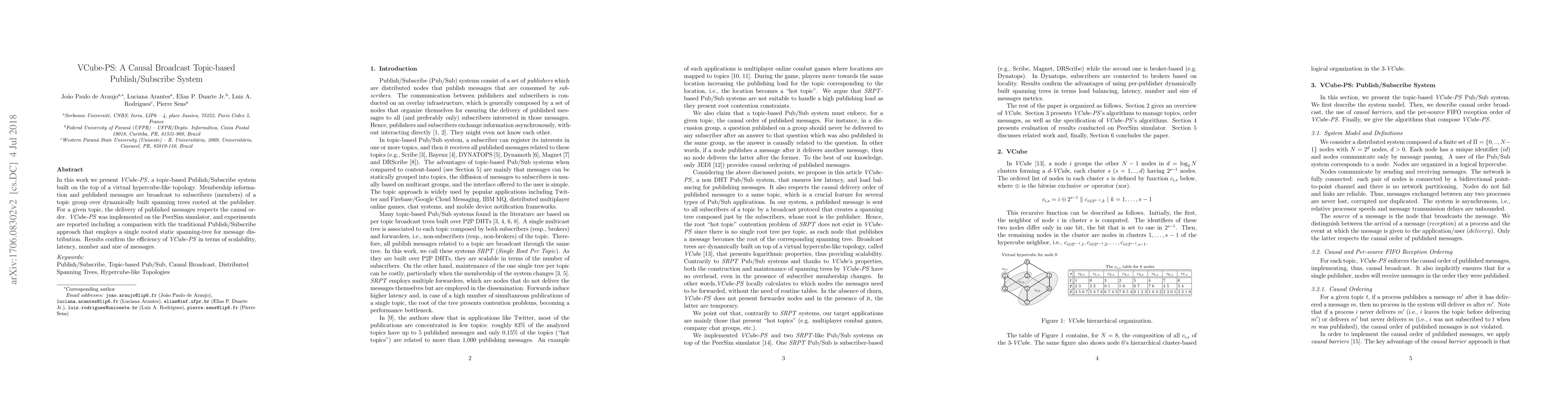 VCube-PS is a novel topic-based Publish/Subscribe system utilizing a virtual hypercube topology for efficient message broadcasting. Experiments show it outperforms traditional methods in scalability, latency, and message handling.