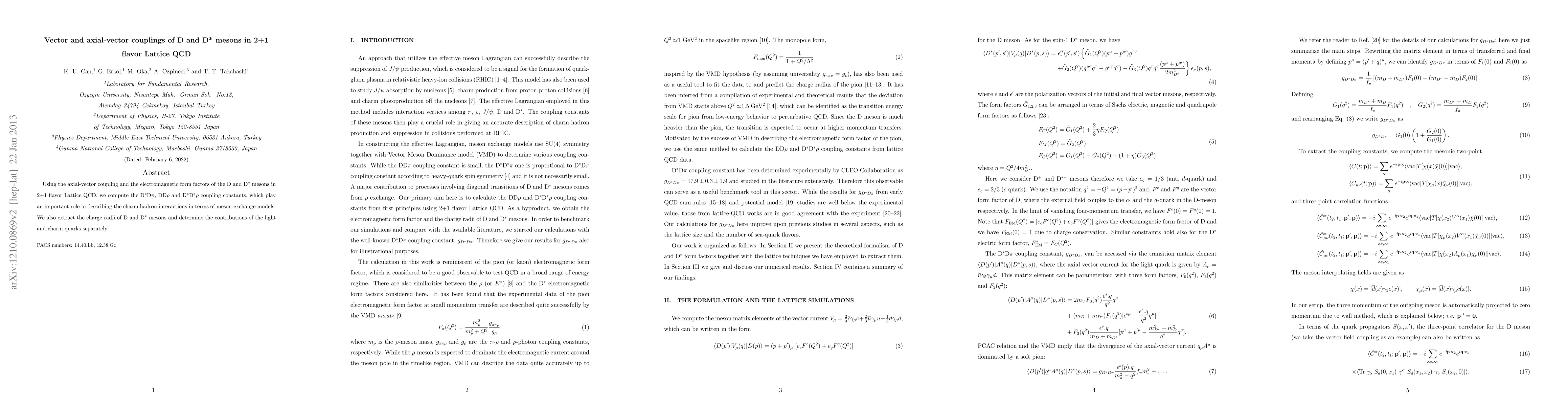 This research paper computes vector and axial-vector couplings for D and D* mesons using 2+1 flavor Lattice QCD, focusing on D*D\pi, DD\rho, and D*D*\rho coupling constants crucial for charm hadron interactions. Additionally, it determines the charge radii of D and D* mesons, separately assessing the contributions from light and charm quarks.