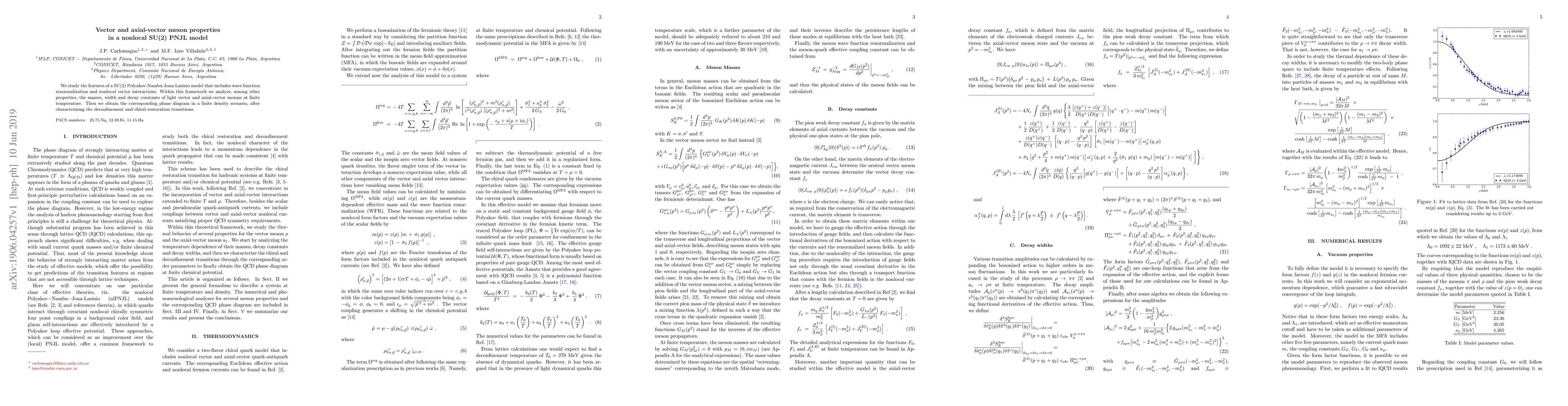 We study the features of a SU(2) Polyakov-Nambu-Jona-Lasinio model that includes wave function renormalization and nonlocal vector interactions. Within this framework we analyze, among other properties, the masses, width and decay constants of light vector and axial-vector mesons at finite temperature. Then we obtain the corresponding phase diagram in a finite density scenario, after characterizing the deconfinement and chiral restoration transitions.