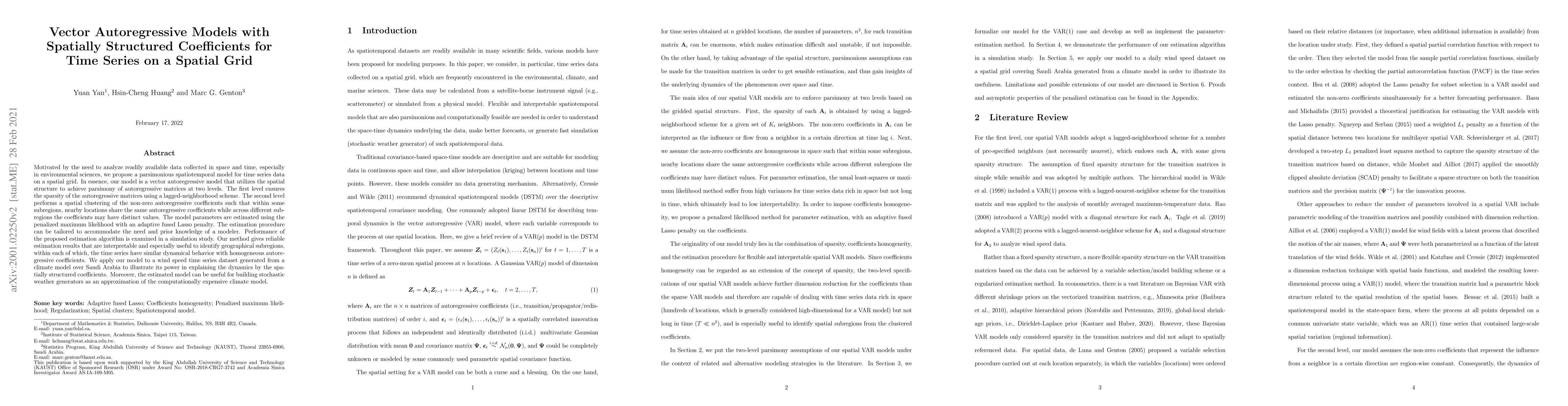This paper proposes a vector autoregressive model for high-dimensional time series data on spatial grids, utilizing spatial structure for parsimony and capturing spatial non-stationarity. The model identifies geographical subregions with homogeneous autoregressive coefficients and is estimated using a penalized maximum likelihood method.