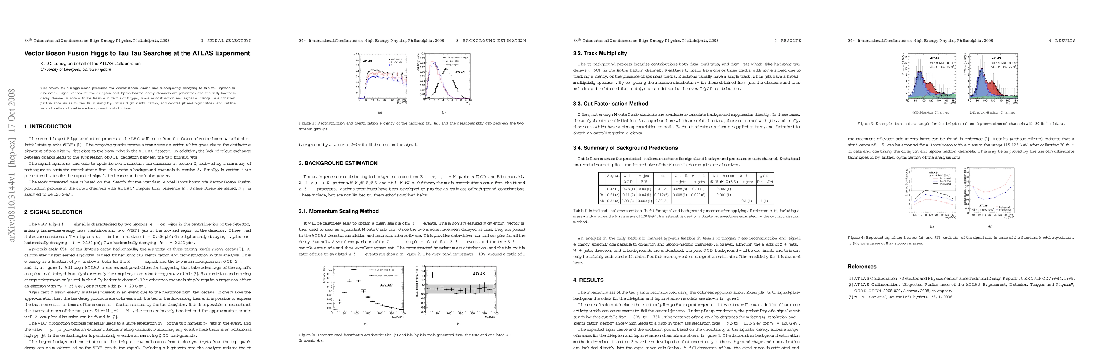 The search for a Higgs boson produced via Vector Boson Fusion and subsequently decaying to two tau leptons is discussed. Significances for the di-lepton and lepton-hadron decay channels are presented, and the fully hadronic decay channel is shown to be feasible in terms of trigger, mass reconstruction and signal efficiency. We consider performance issues for tau ID, missing transverse energy, forward jet identification, and central jet and b-jet vetoes, and outline several methods to estimate background contributions.