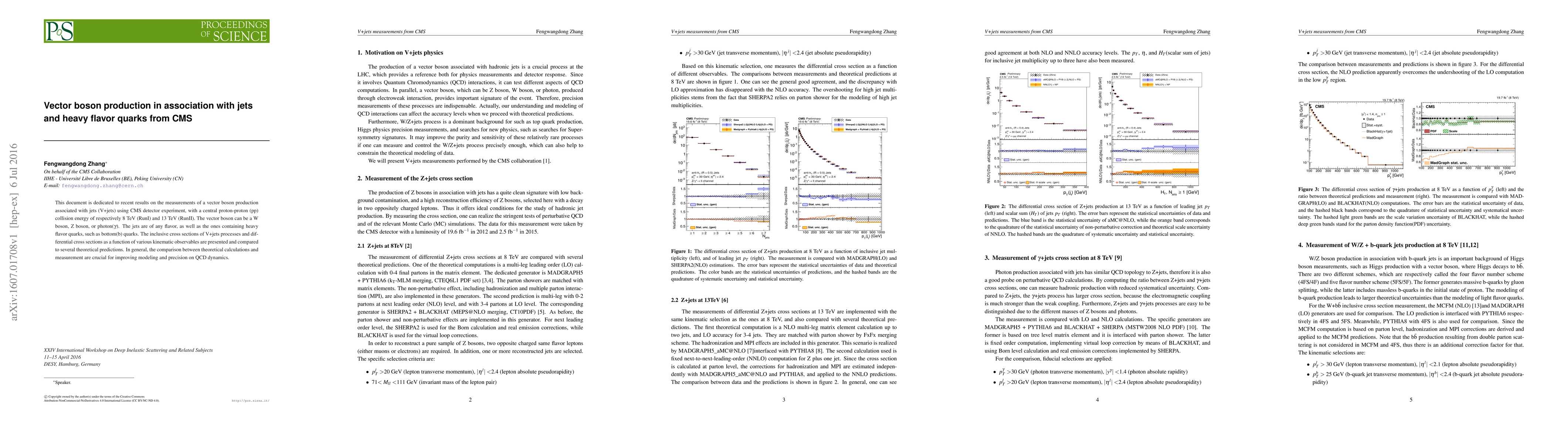 The CMS experiment measured vector boson production in association with jets and heavy flavor quarks at 8 TeV and 13 TeV energies, providing insights into QCD dynamics.