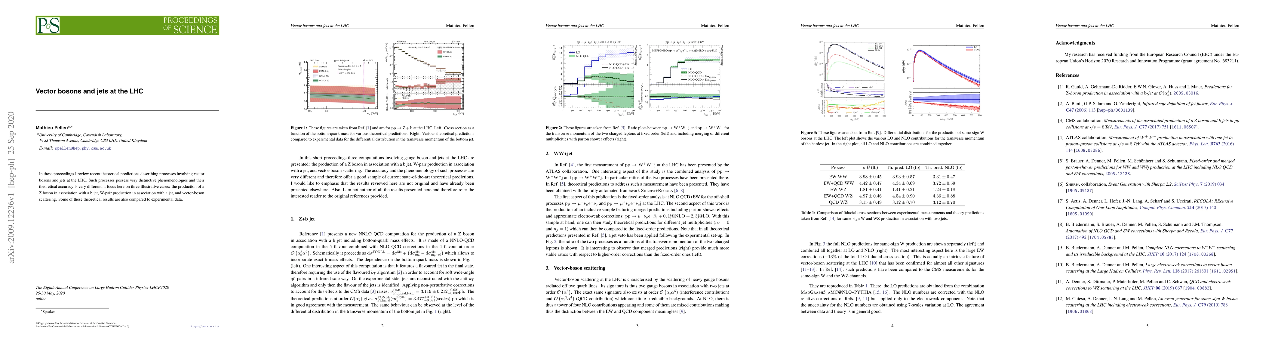 This paper reviews theoretical predictions for vector boson production at the LHC, comparing them to experimental data, with a focus on distinctive phenomenologies and accuracy.