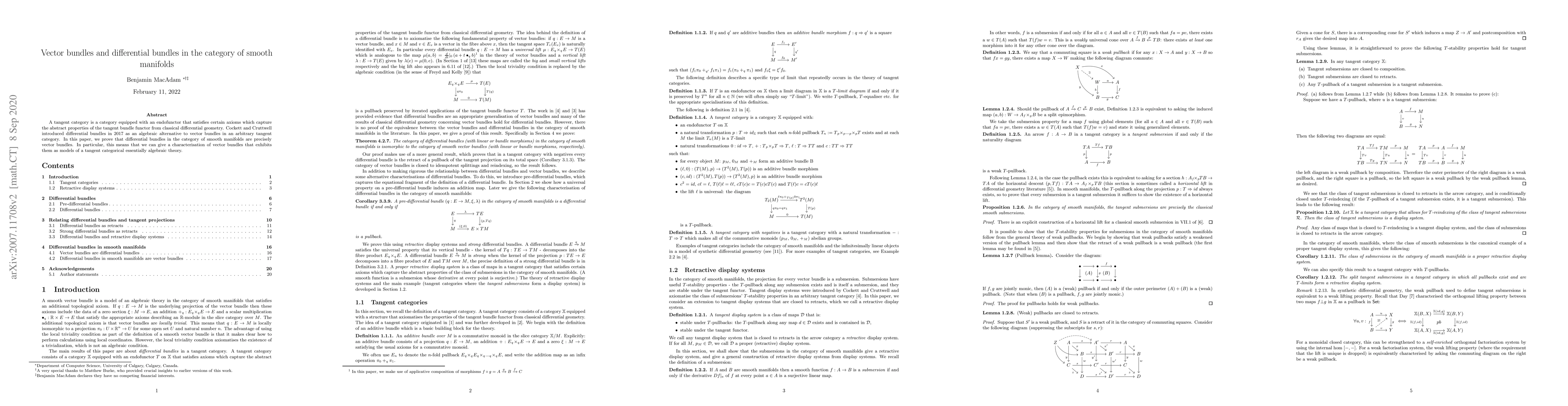 Summary: This paper proves that differential bundles in the category of smooth manifolds are equivalent to vector bundles, demonstrating that they can be understood as models of a tangent categorical essentially algebraic theory. It provides a characterization of vector bundles using the framework of differential bundles.