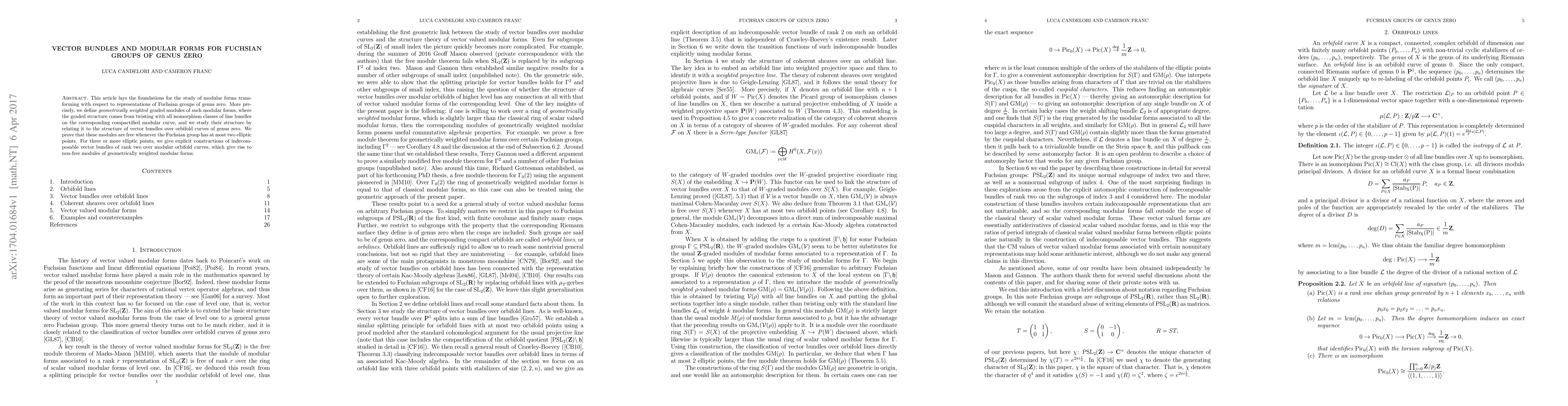 This article lays the foundations for the study of modular forms transforming with respect to representations of Fuchsian groups of genus zero. More precisely, we define geometrically weighted graded modules of such modular forms, where the graded structure comes from twisting with all isomorphism classes of line bundles on the corresponding compactified modular curve, and we study their structure by relating it to the structure of vector bundles over orbifold curves of genus zero. We prove that these modules are free whenever the Fuchsian group has at most two elliptic points. For three or more elliptic points, we give explicit constructions of indecomposable vector bundles of rank two over modular orbifold curves, which give rise to non-free modules of geometrically weighted modular forms.
