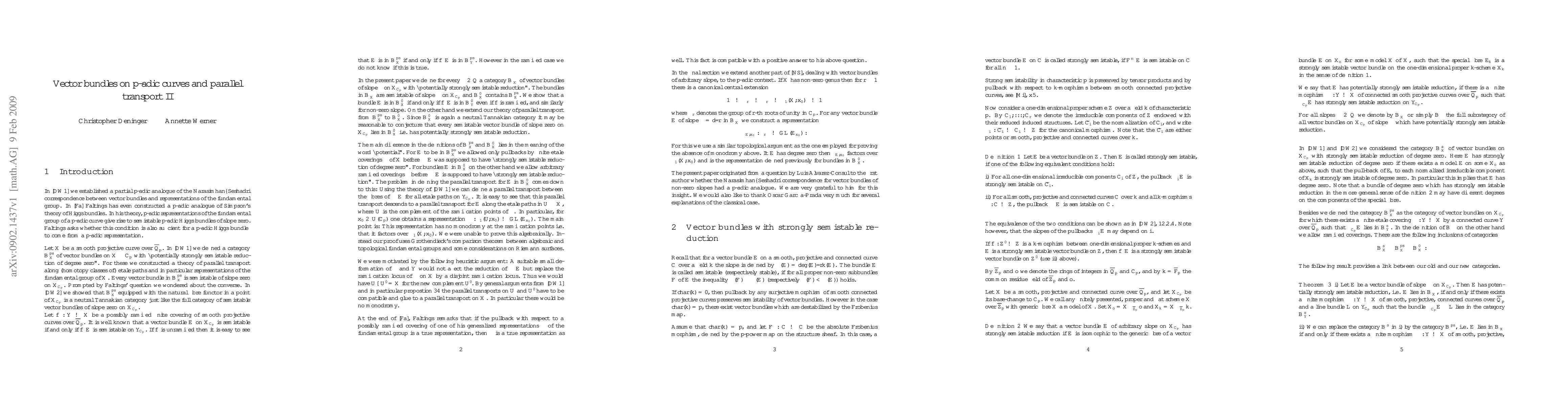 This paper extends the theory of étale parallel transport to vector bundles on p-adic curves, focusing on slope zero bundles that remain stable under ramified coverings. It also constructs p-adic representations for central extensions of the fundamental group for bundles of non-zero slope.