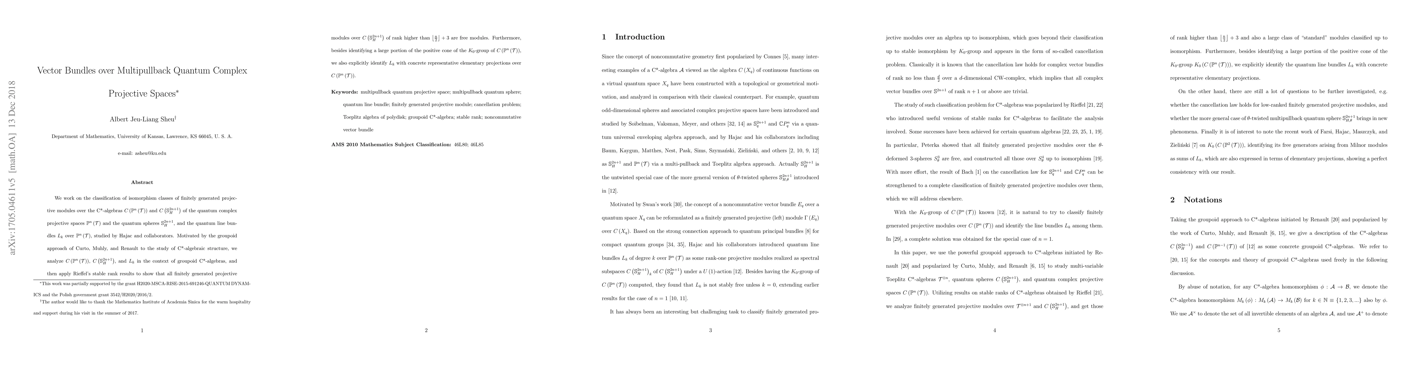 We work on the classification of isomorphism classes of finitely generated projective modules over the C*-algebras $C\left( \mathbb{P}^{n}\left( \mathcal{T}\right) \right) $ and $C\left( \mathbb{S}_{H}^{2n+1}\right) $ of the quantum complex projective spaces $\mathbb{P}^{n}\left( \mathcal{T} \right) $ and the quantum spheres $\mathbb{S}_{H}^{2n+1}$, and the quantum line bundles $L_{k}$ over $\mathbb{P}^{n}\left( \mathcal{T}\right) $, studied by Hajac and collaborators. Motivated by the groupoid approach of Curto, Muhly, and Renault to the study of C*-algebraic structure, we analyze $C\left( \mathbb{P}^{n}\left( \mathcal{T}\right) \right) $, $C\left( \mathbb{S}_{H}^{2n+1}\right) $, and $L_{k}$ in the context of groupoid C*-algebras, and then apply Rieffel's stable rank results to show that all finitely generated projective modules over $C\left( \mathbb{S}_{H} ^{2n+1}\right) $ of rank higher than $\left\lfloor \frac{n}{2}\right\rfloor +3$ are free modules. Furthermore, besides identifying a large portion of the positive cone of the $K_{0}$-group of $C\left( \mathbb{P}^{n}\left( \mathcal{T}\right) \right) $, we also explicitly identify $L_{k}$ with concrete representative elementary projections over $C\left( \mathbb{P} ^{n}\left( \mathcal{T}\right) \right) $.