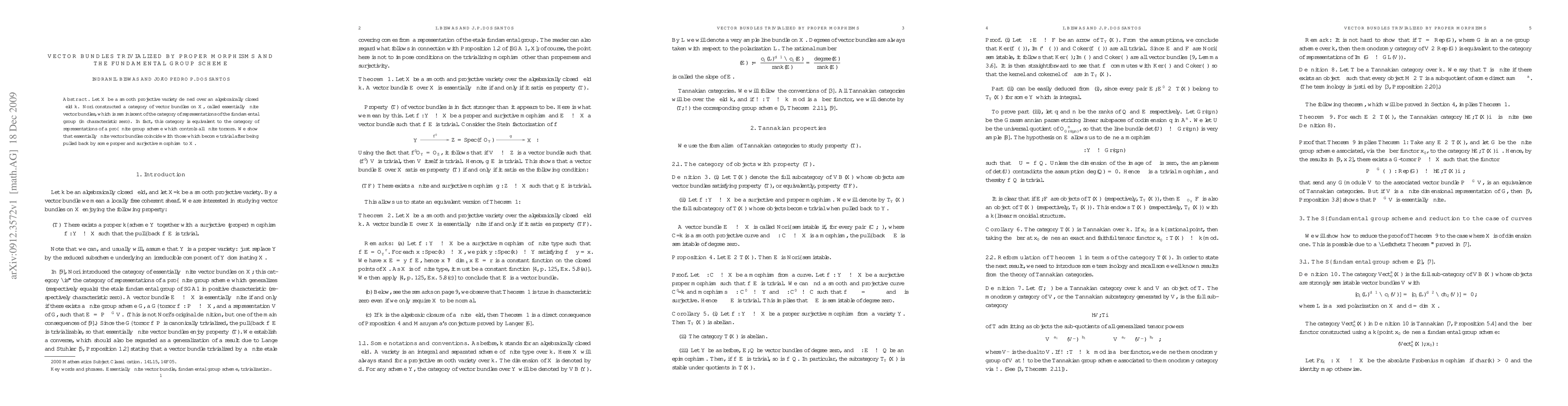 Summary: This paper explores the equivalence between essentially finite vector bundles on a smooth projective variety and those trivialized by proper morphisms, linking them to the representations of a pro-finite group scheme controlling finite torsors. The result highlights the connection between vector bundles and fundamental group schemes.