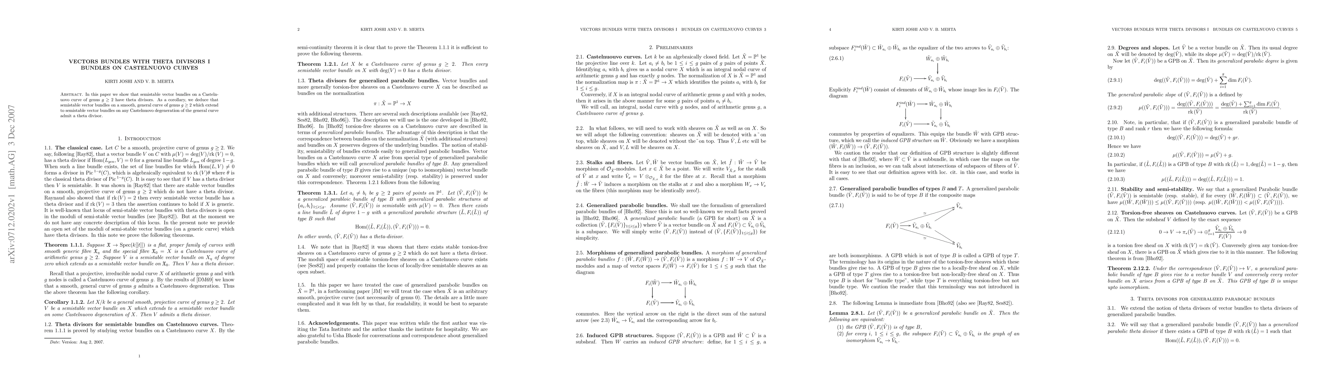 This paper demonstrates that semistable vector bundles on Castelnuovo curves of genus g ≥ 2 possess theta divisors, and as a corollary, it follows that such bundles on smooth, general curves of genus g ≥ 2 that extend to any Castelnuovo degeneration also admit a theta divisor.