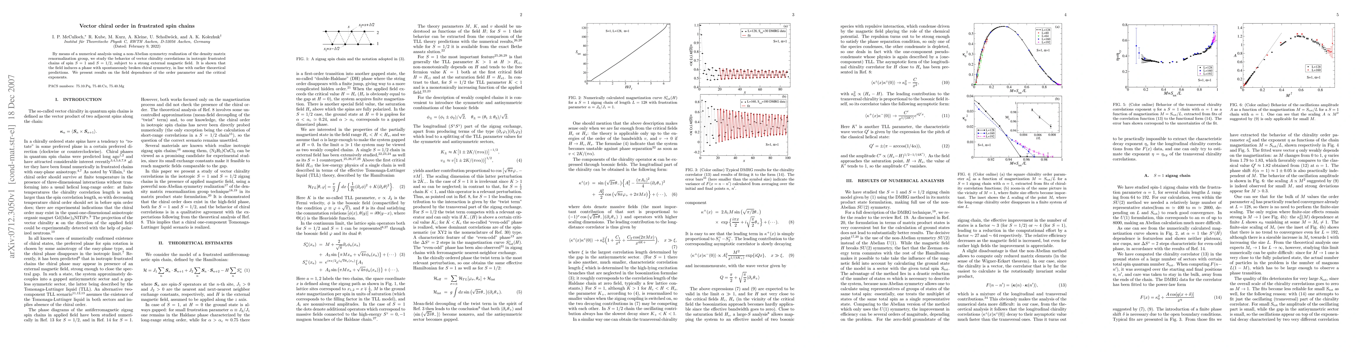 This paper investigates vector chirality correlations in isotropic frustrated spin chains of S=1 and S=1/2 using numerical analysis, revealing a phase with spontaneously broken chiral symmetry under strong magnetic fields, and provides results on the order parameter and critical exponents.