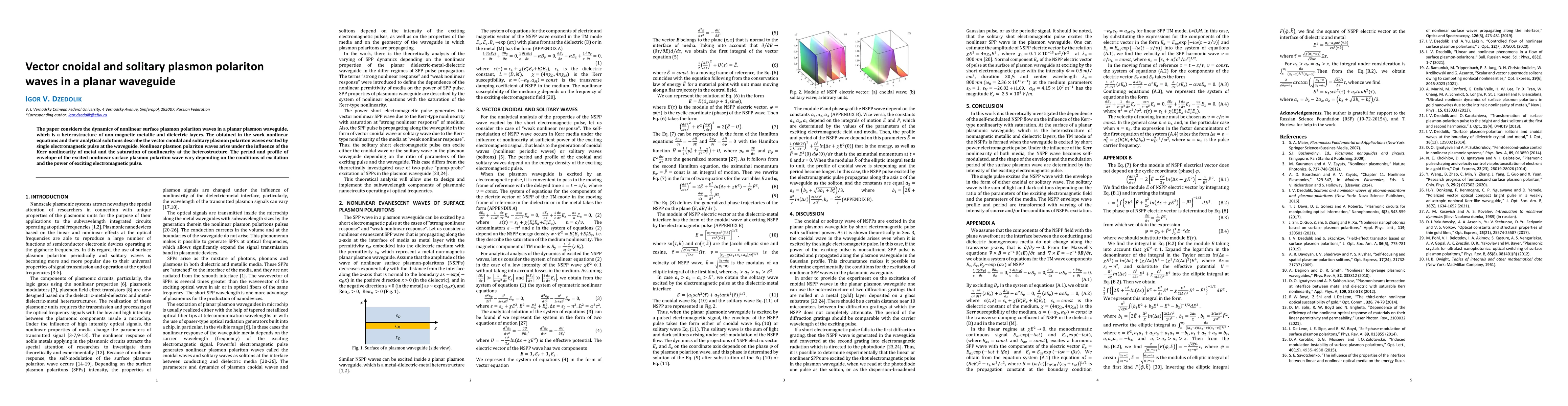 Development of a comprehensive theoretical model describing the dynamics of nonlinear SPP waves in planar waveguides, incorporating Kerr nonlinearity and saturation effects.