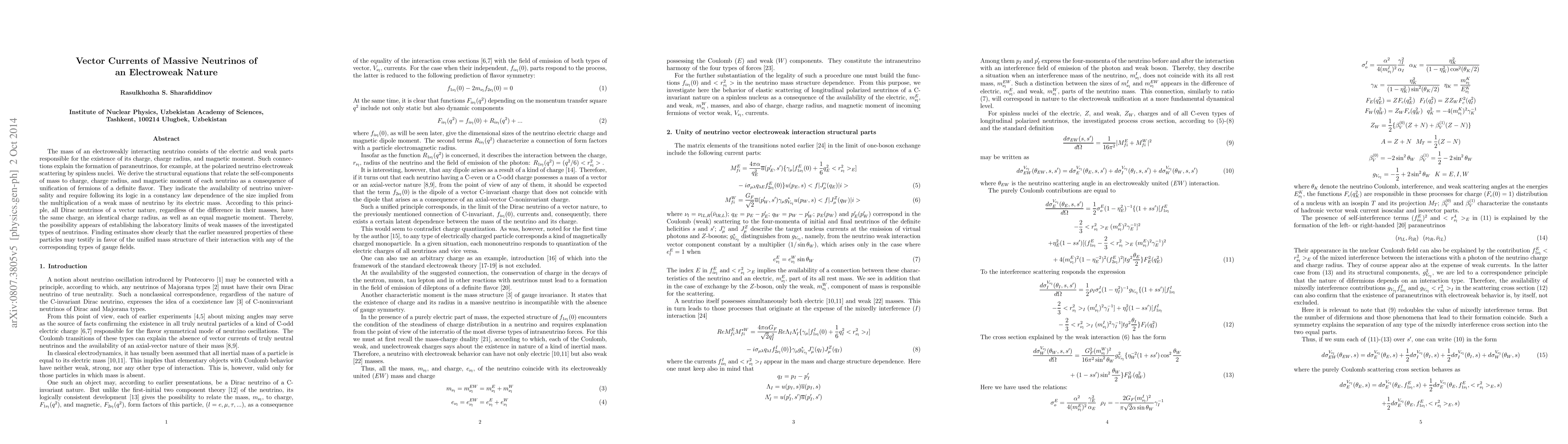 The mass of an electroweakly interacting neutrino consists of the electric and weak parts responsible for the existence of its charge, charge radius, and magnetic moment. Such connections explain the formation of paraneutrinos, for example, at the polarized neutrino electroweak scattering by spinless nuclei. We derive the structural equations that relate the self-components of mass to charge, charge radius, and magnetic moment of each neutrino as a consequence of unification of fermions of a definite flavor. They indicate the availability of neutrino universality and require following its logic in a constancy law dependence of the size implied from the multiplication of a weak mass of neutrino by its electric mass. According to this principle, all Dirac neutrinos of a vector nature, regardless of the difference in their masses, have the same charge, an identical charge radius, as well as an equal magnetic moment. Thereby, the possibility appears of establishing the laboratory limits of weak masses of the investigated types of neutrinos. Finding estimates show clearly that the earlier measured properties of these particles may testify in favor of the unified mass structure of their interaction with any of the corresponding types of gauge fields.